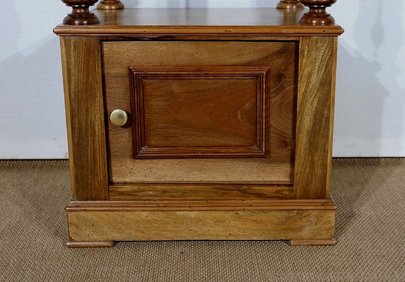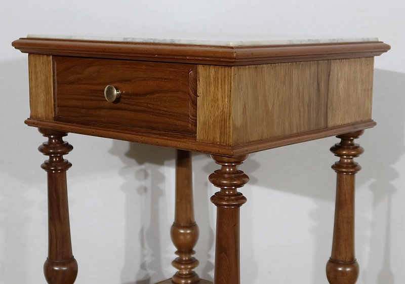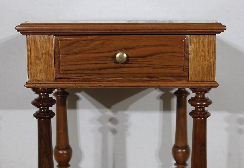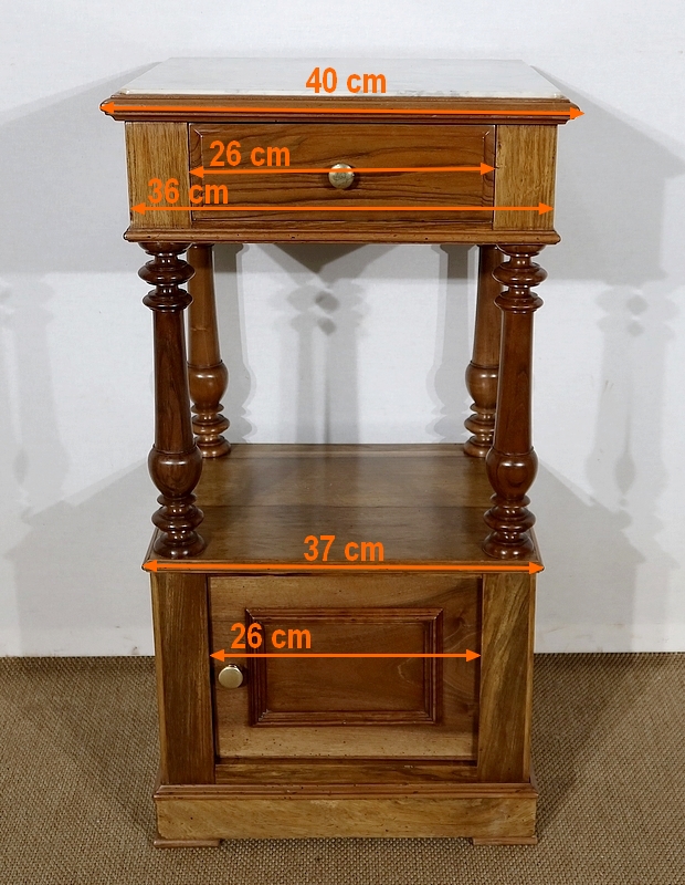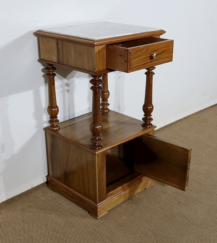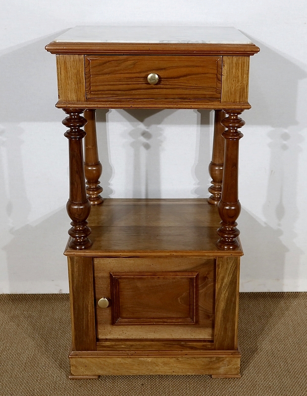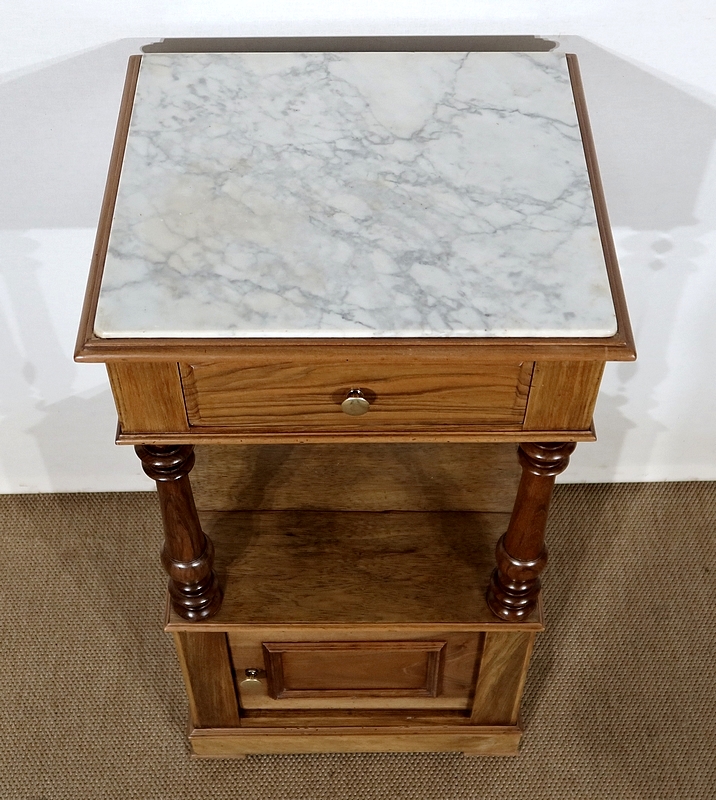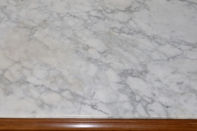 Petit meuble toutes faces munie d’un beau marbre blanc légèrement veiné de gris en castré dans une moulure en son pourtour.