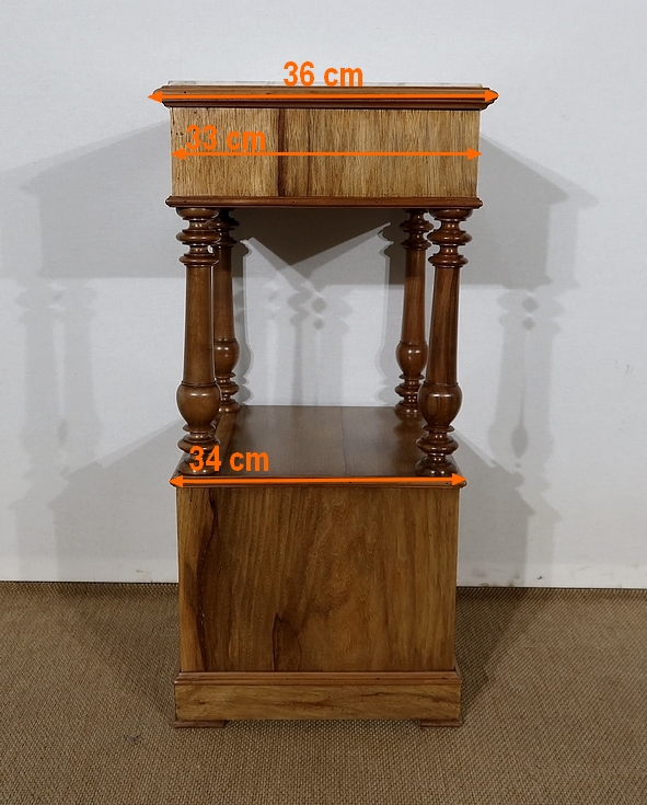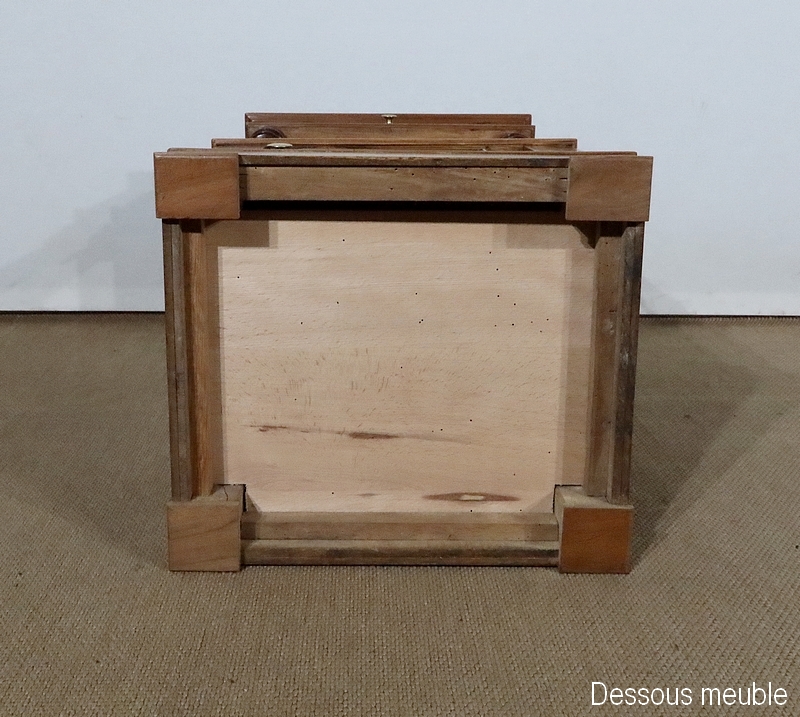 Ce mobilier bénéficie en ceinture d’un tiroir allégé ou creusé dans son extrémité, se tirant par un bouton en laiton.