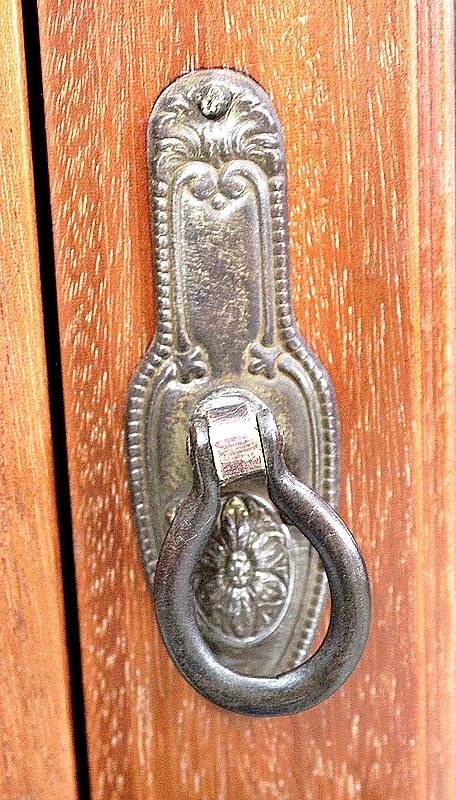 Chacun de ces deux ouvrants est pourvu d’une poignée avec anneaux de tirage, en Laiton et d’Origine.
