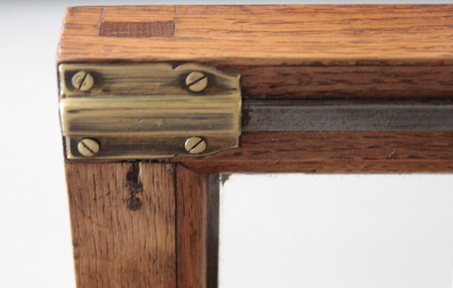 Petite vitrine droite de style Louis XVI entièrement en chêne massif à hauteur d’appui.