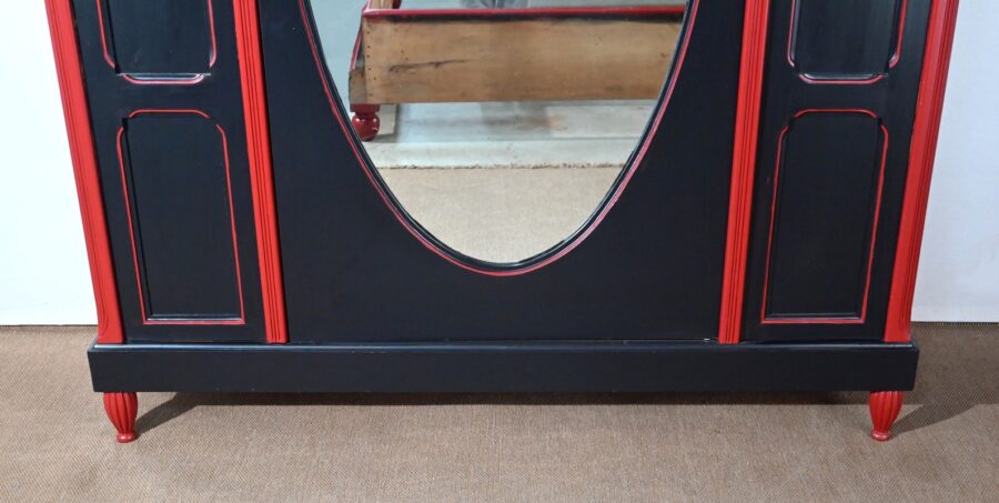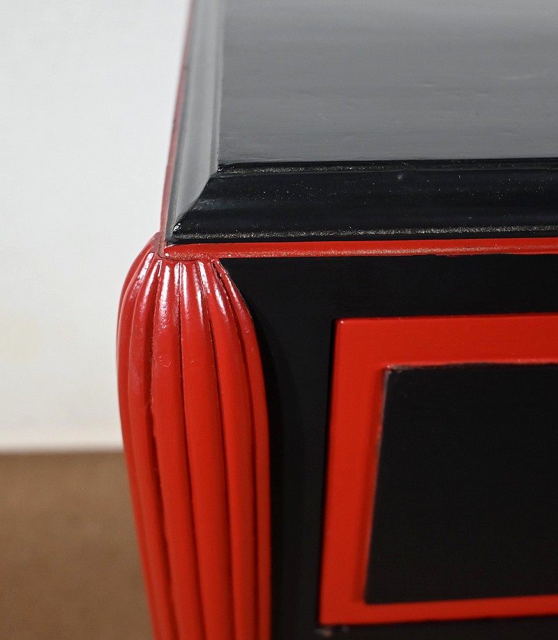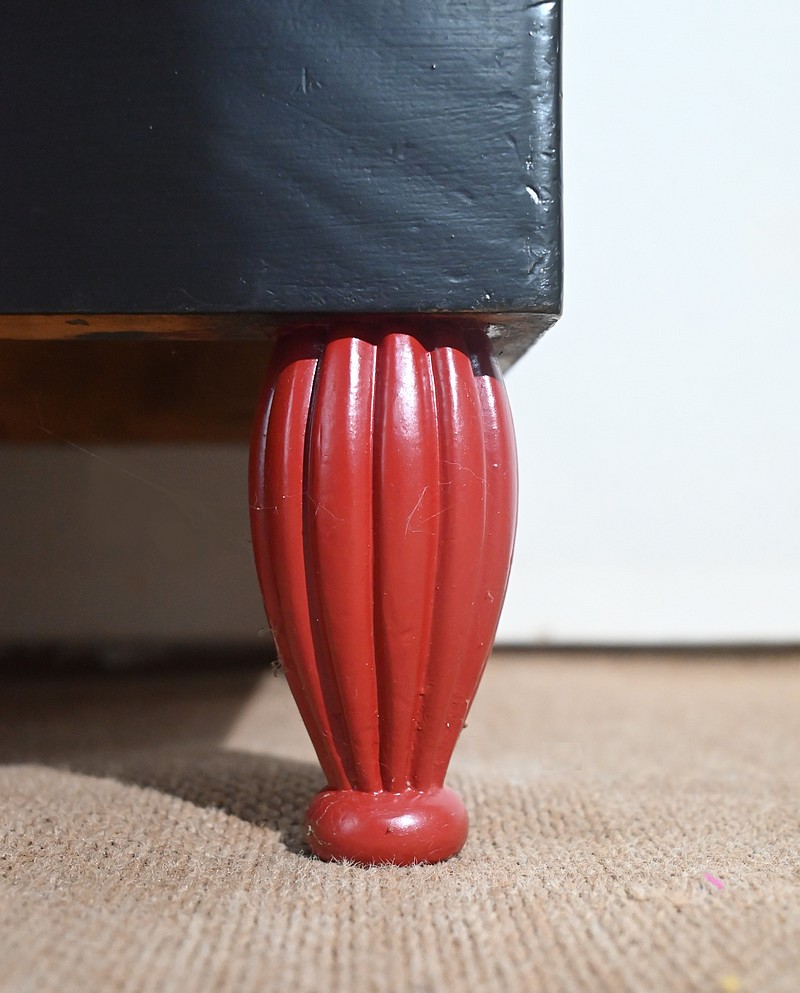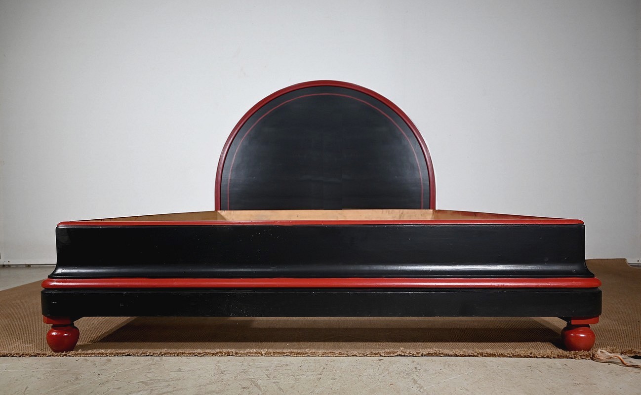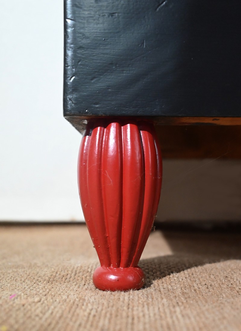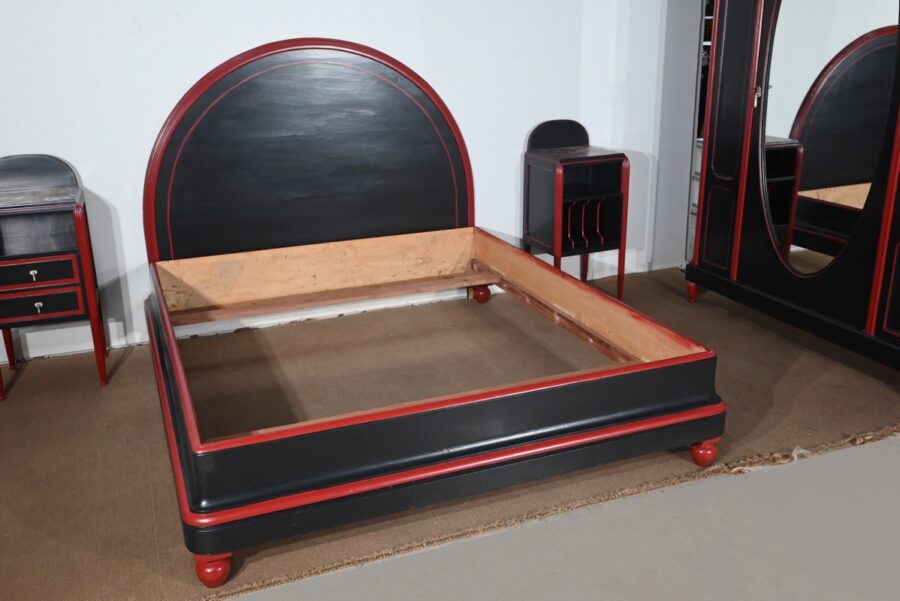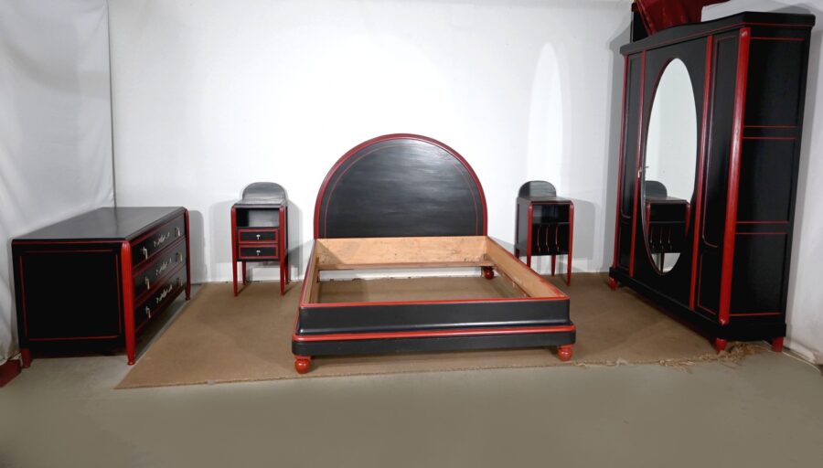 Rare ensemble de Chambre 5 pièces, en bois peint de couleurs noire et rouge sang de bœuf, d’époque Art Déco.