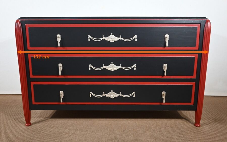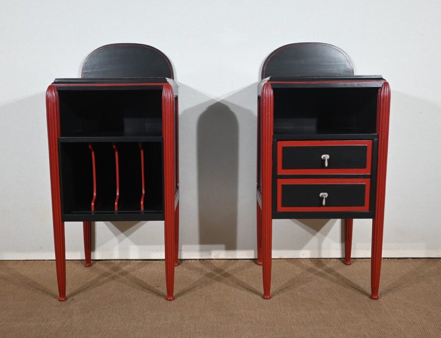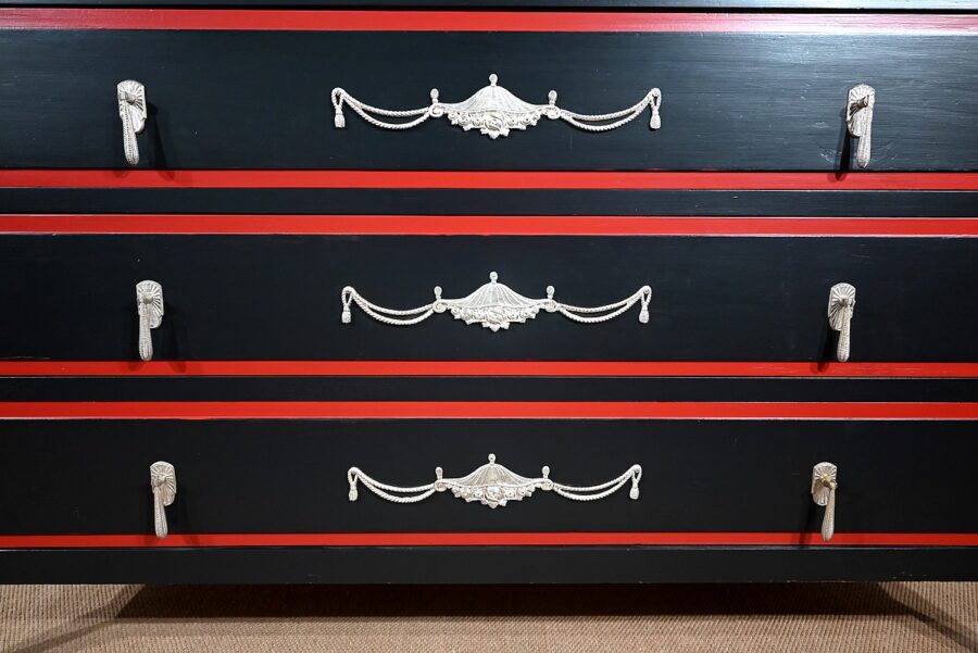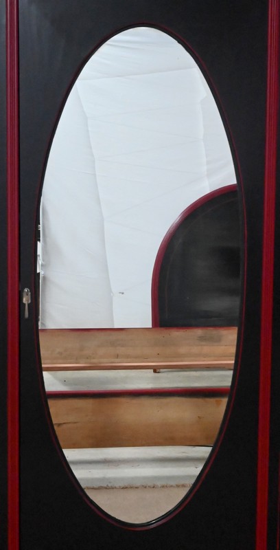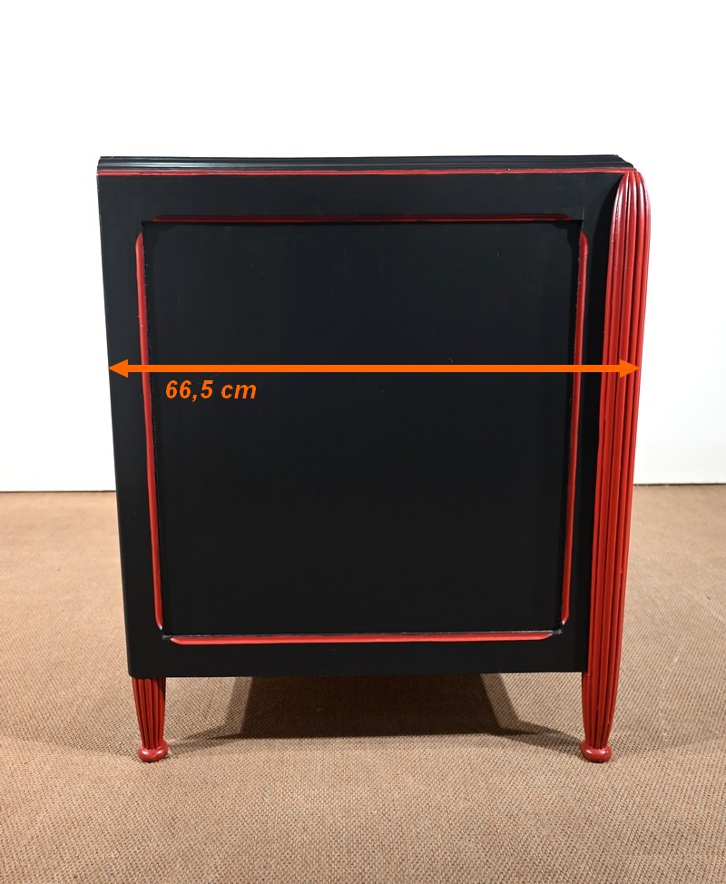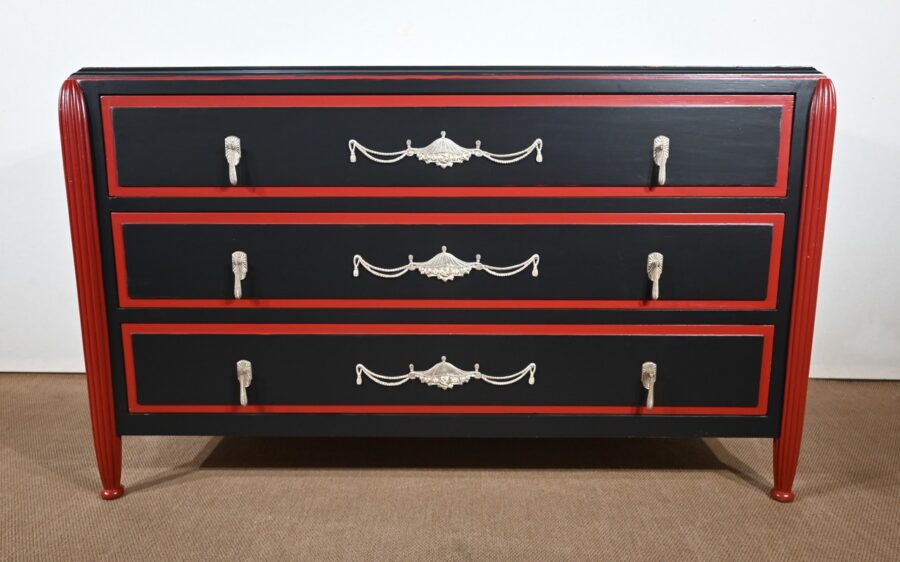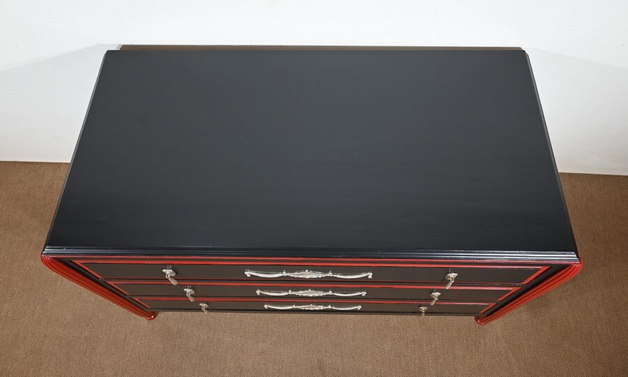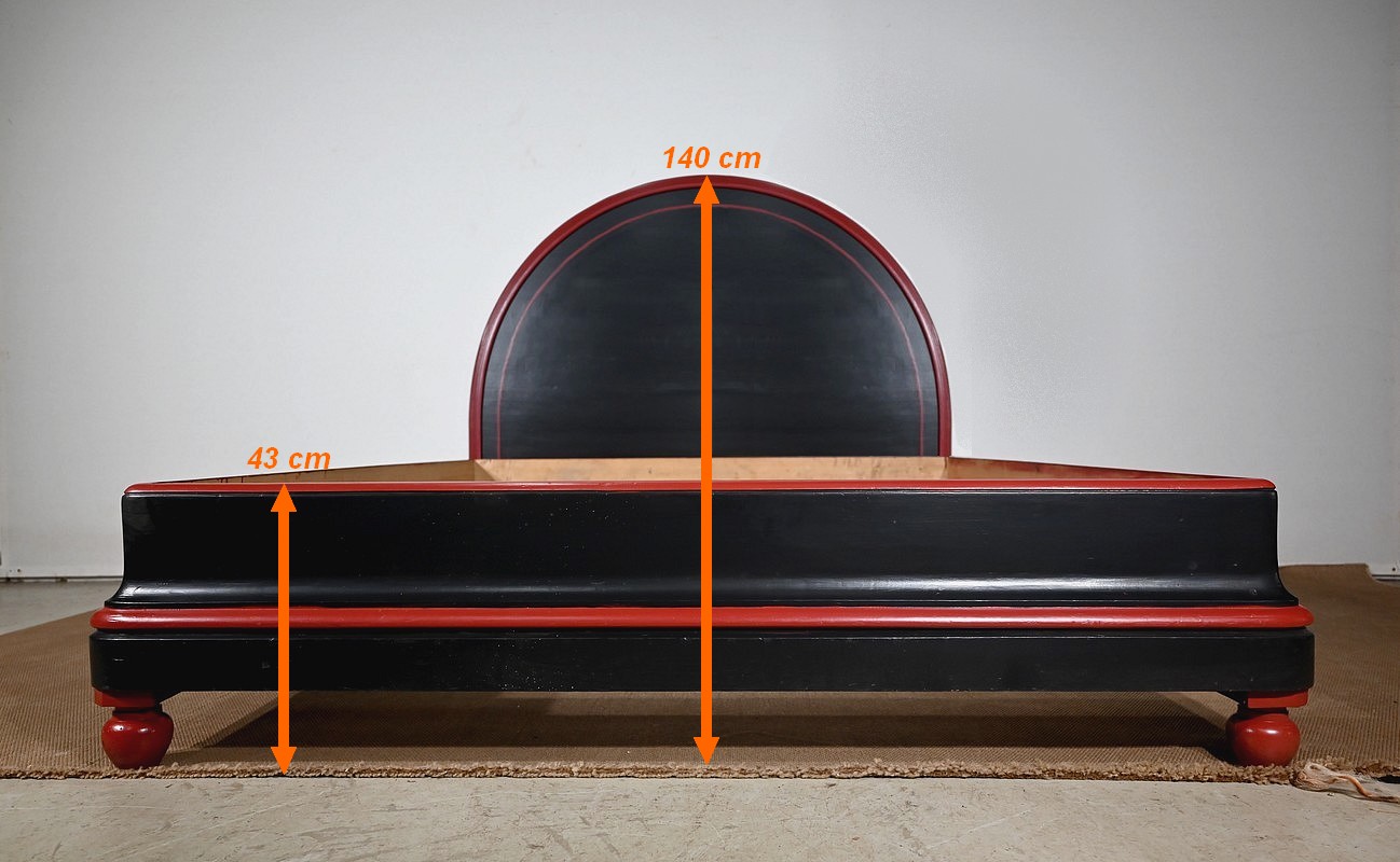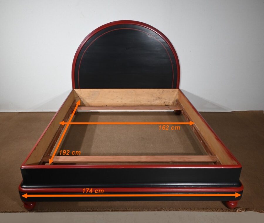 Rare ensemble de Chambre 5 pièces, en bois peint de couleurs noire et rouge sang de bœuf, d’époque Art Déco.