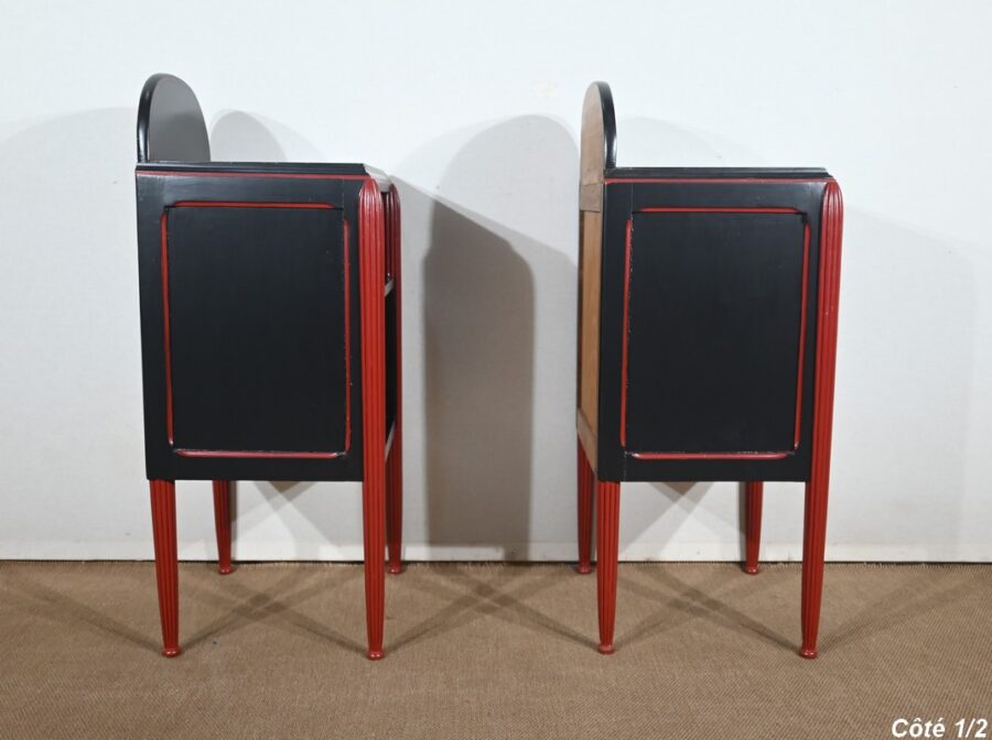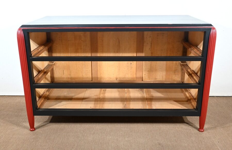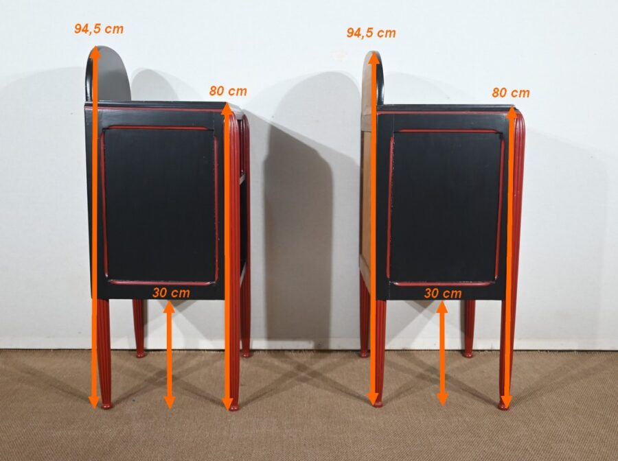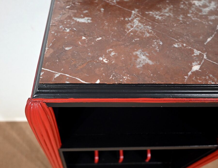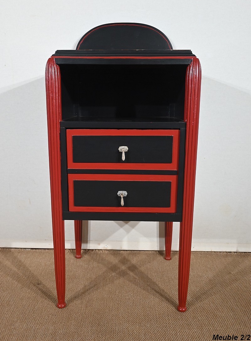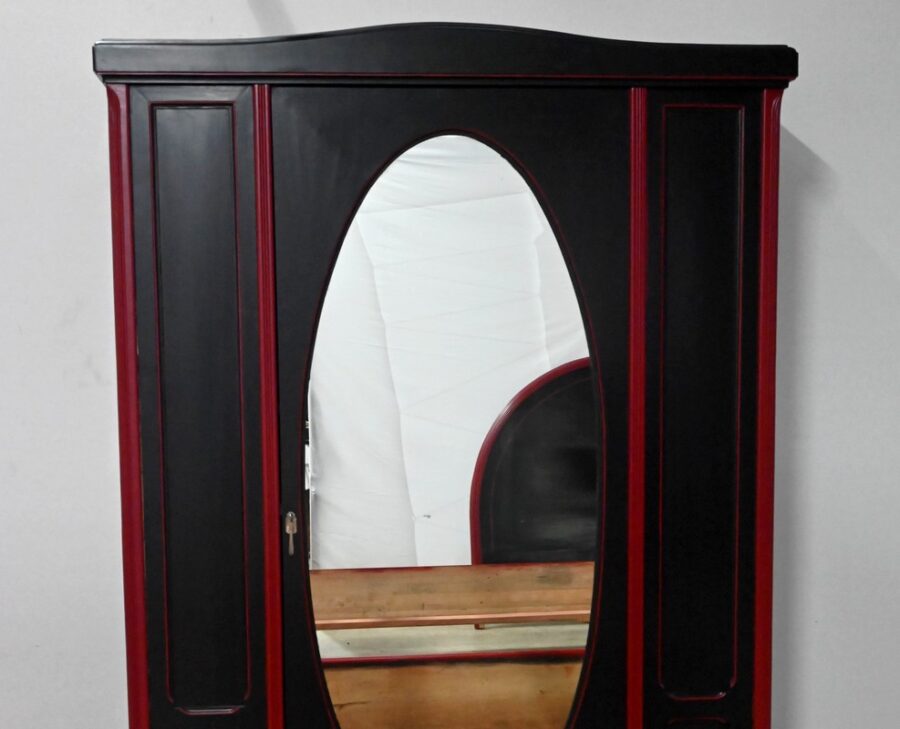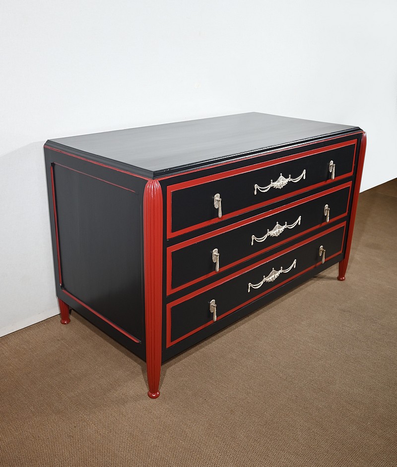 Rare ensemble de Chambre 5 pièces, en bois peint de couleurs noire et rouge sang de bœuf, d’époque Art Déco.