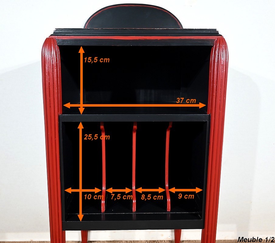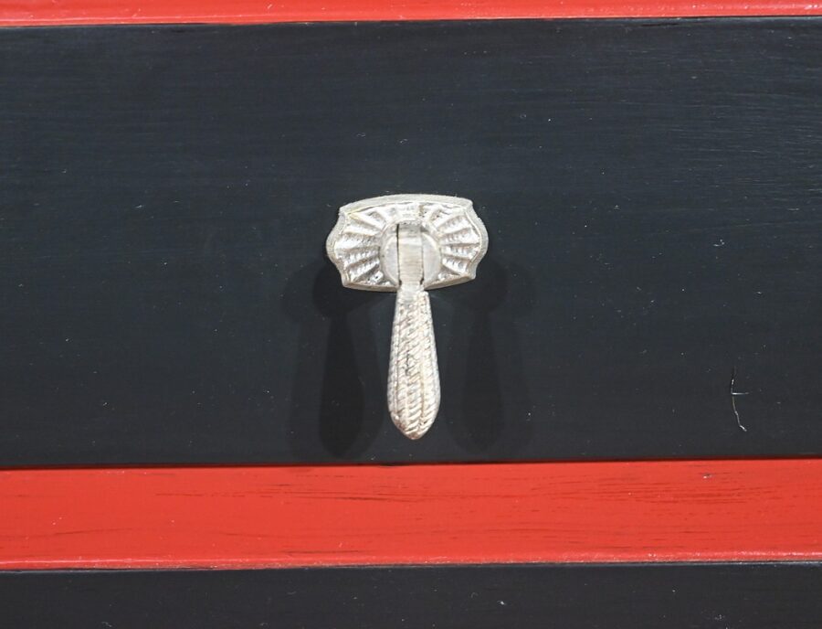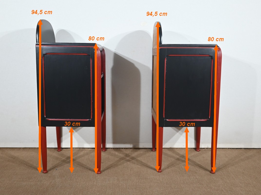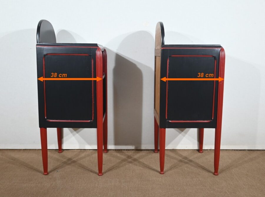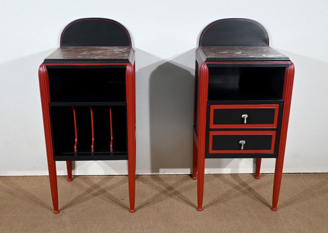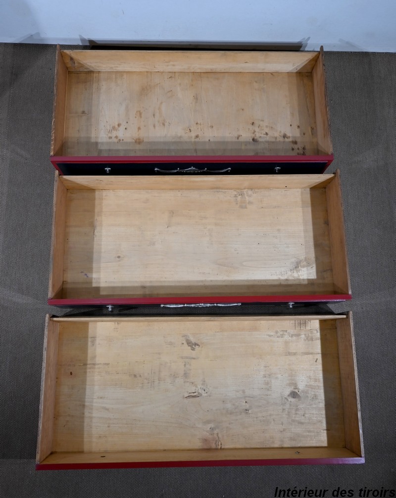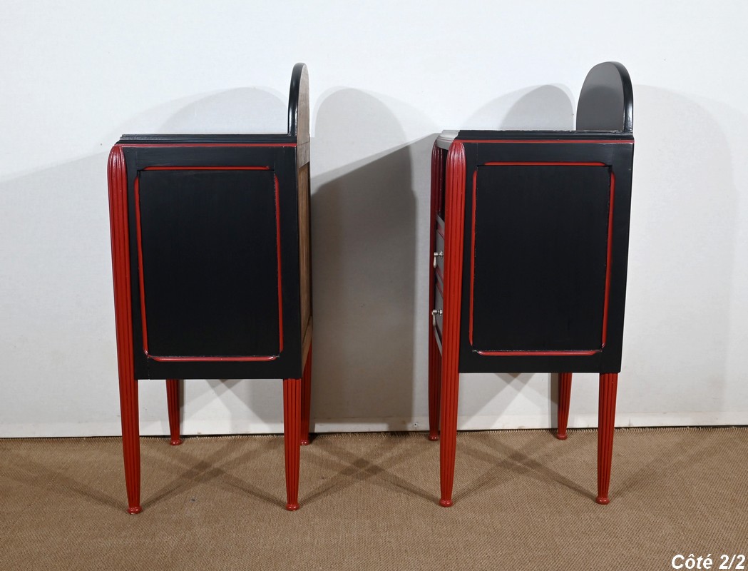 Rare ensemble de Chambre 5 pièces, en bois peint de couleurs noire et rouge sang de bœuf, d’époque Art Déco.