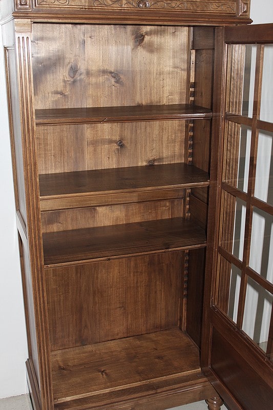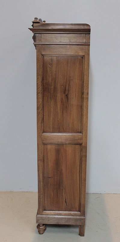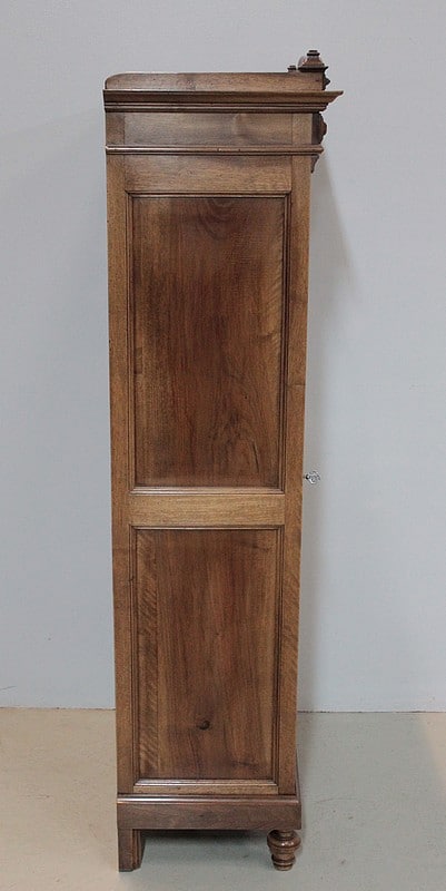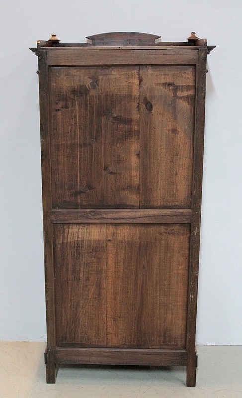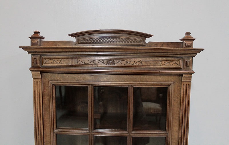 Petite vitrine en noyer, dans le goût Louis XVI, ouvrant à une porte vitrée à barreaux.