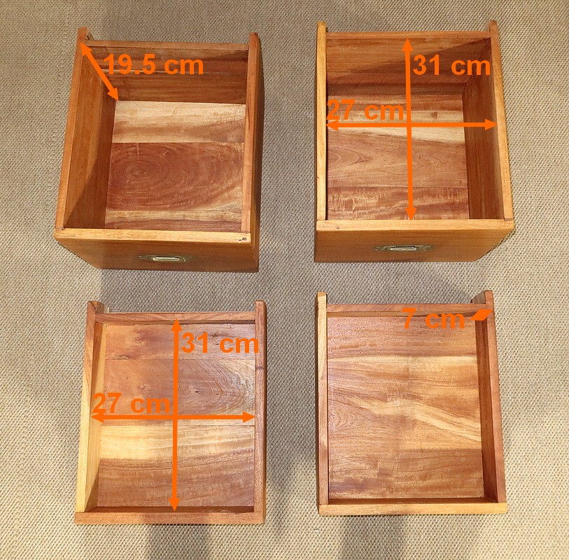 Grands tiroirs : Hauteur : 19.5 cm / Largeur : 91 cm / Profondeur : 31 cm