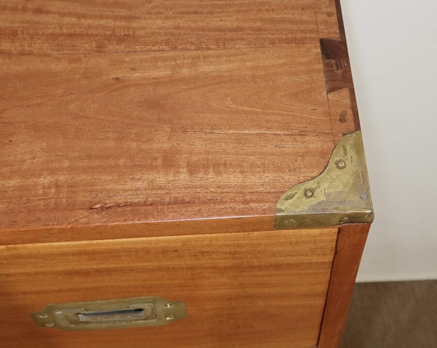 On notera également la présence de renforts d’angles et d’équerres en laiton à but esthétique comme technique.