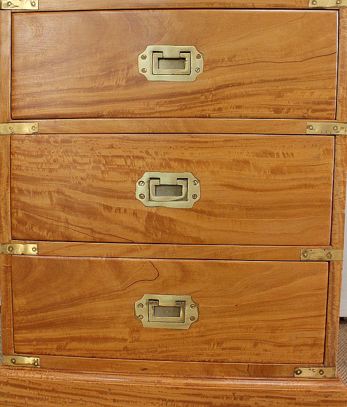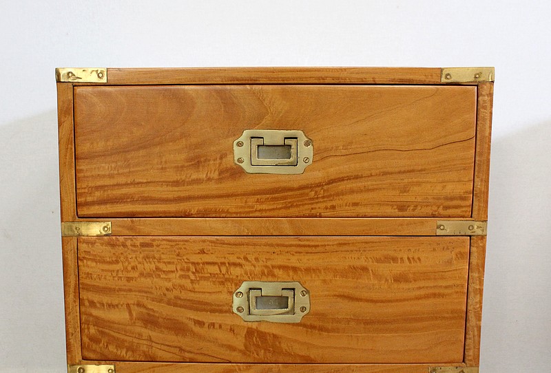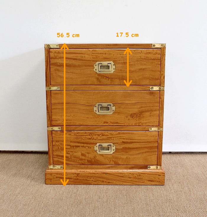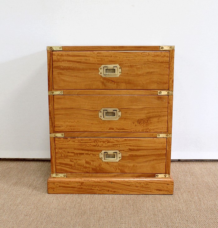 Leur façade ouvre par trois tiroirs offrant tous une profondeur de rangement de 17.5 cm. Tous sont munis d’une poignée de tirage encastrée, en laiton, dans l’esprit marine.
