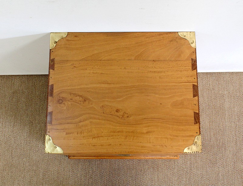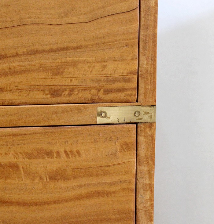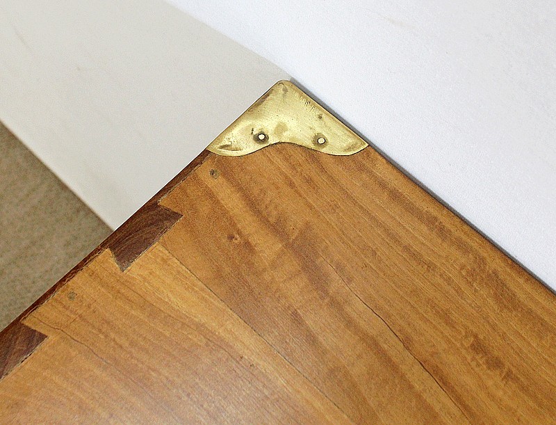 On notera également la présence de renforts d’angles et d’équerres du même alliage que les garnitures, sur le dessus et au niveau des traverses, à but esthétique comme technique.