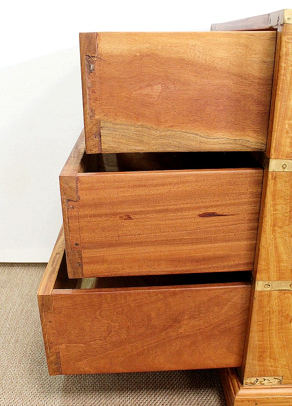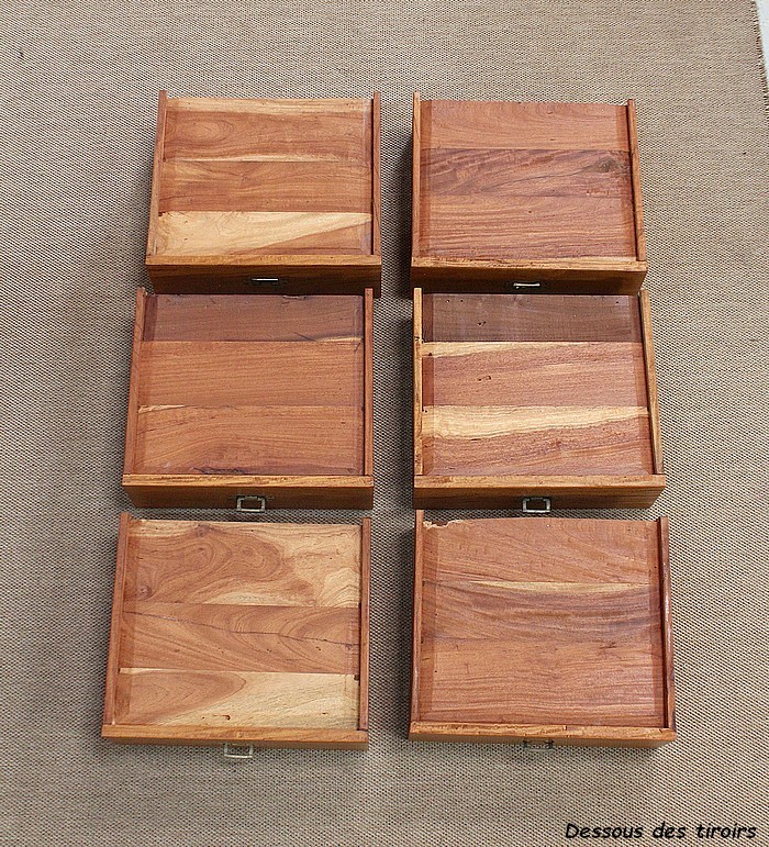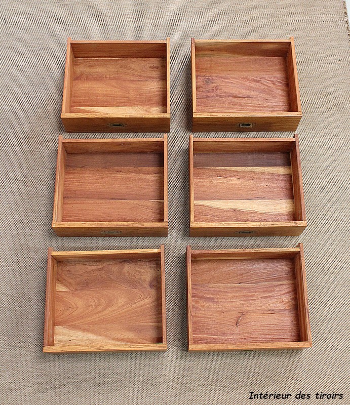 L’intérieur des rangements, soit les côtés et le fond, sont en acajou massif.