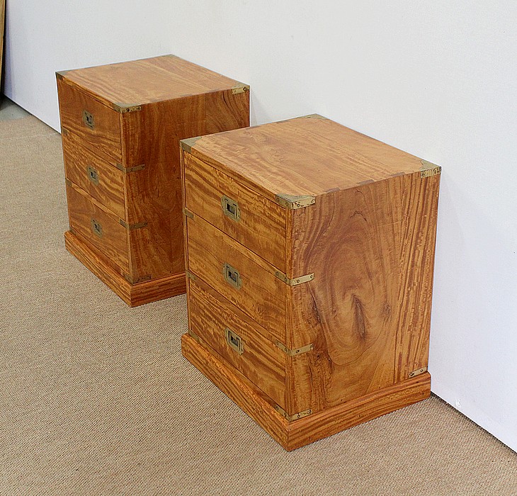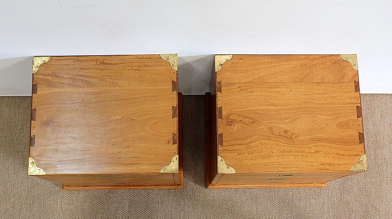 Jolie reproduction d’une paire de petits meubles entièrement en citronnier massif et de forme rectangulaire.
