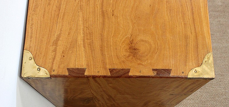 Ces ouvrants, ainsi que l’ensemble de la structure de ces reproductions, sont montés à « queues d’arondes », assemblages apparents, notamment sur le dessus du mobilier.