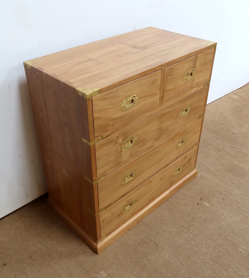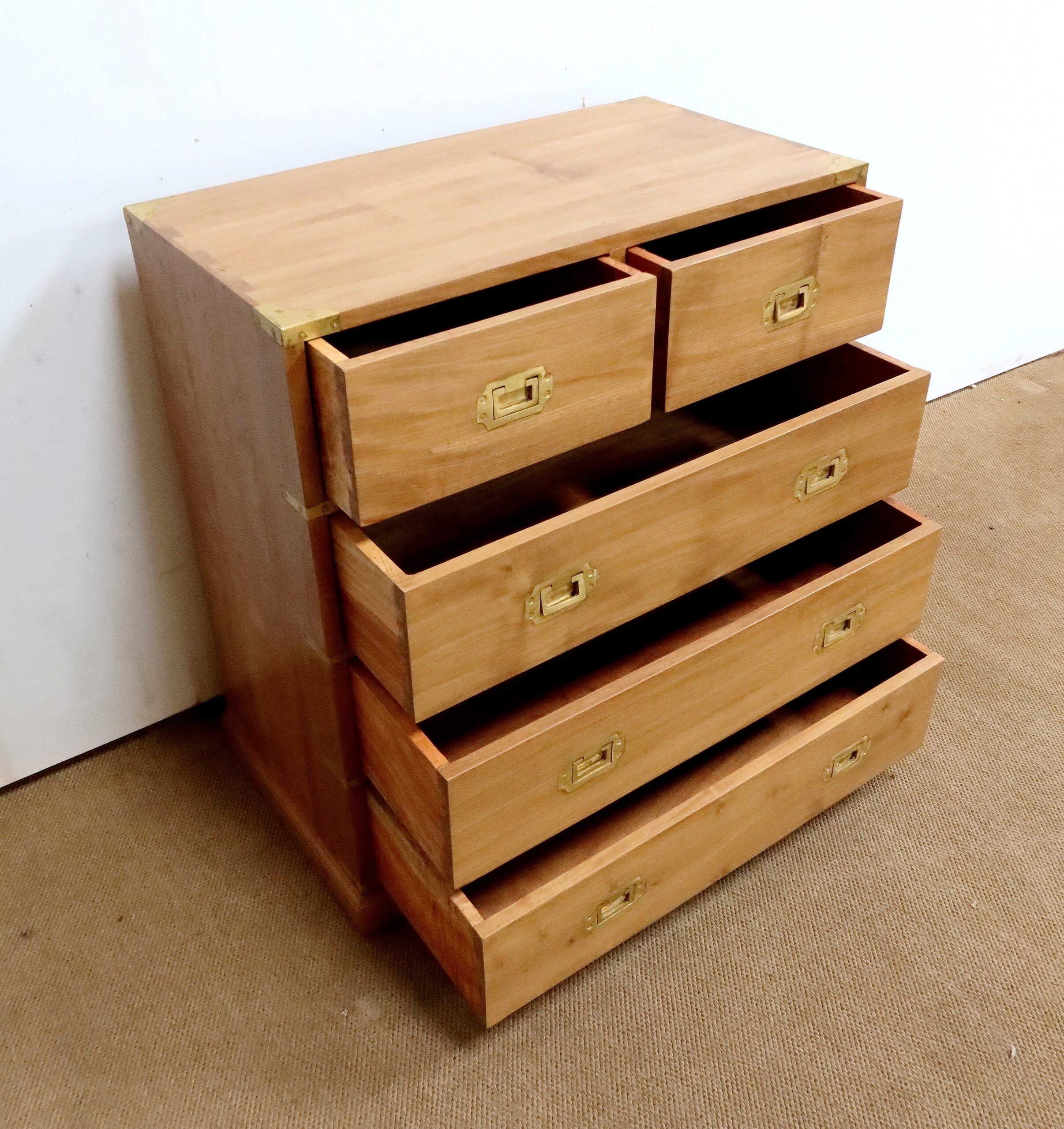 Commode en bois massif blond, originaire du Sud de l’Inde, récupéré sur des demeures coloniales, ce qui en fait un matériau de grande qualité et qui ne travaille plus.