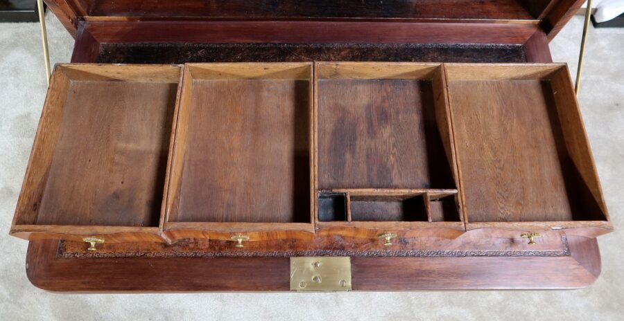 Celui-ci est habillé d’un cuir marron d’origine avec vignette frappée à froid et encadrement en bois de violette à coupe d’onglet.