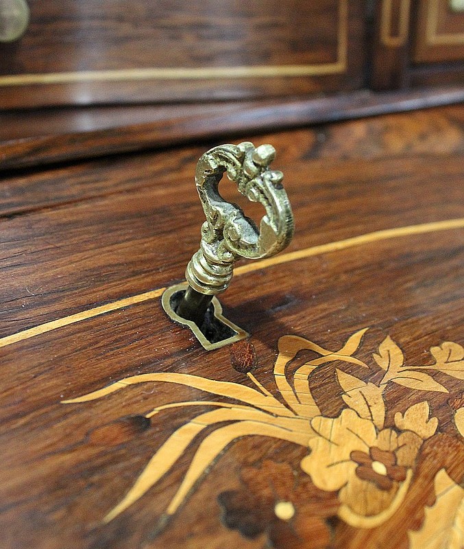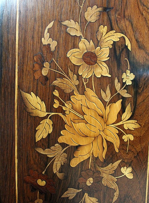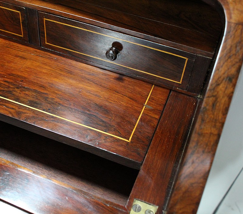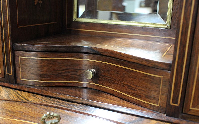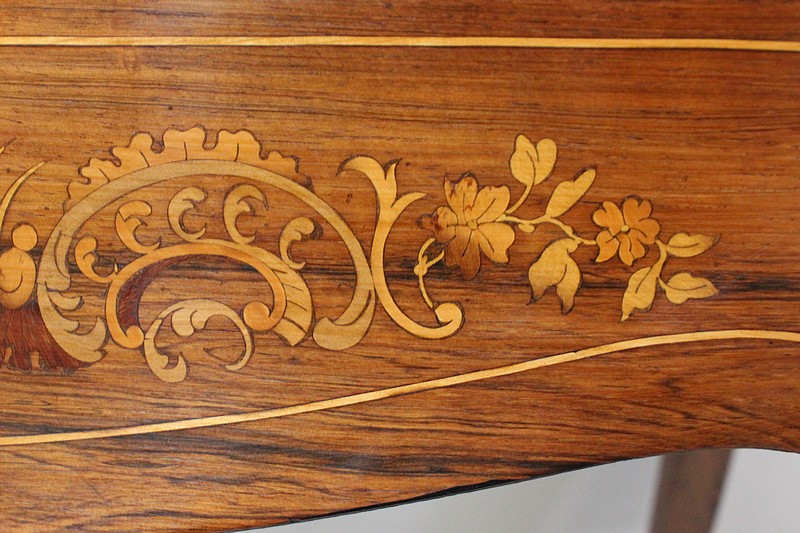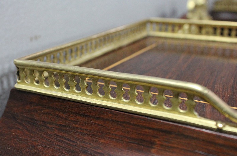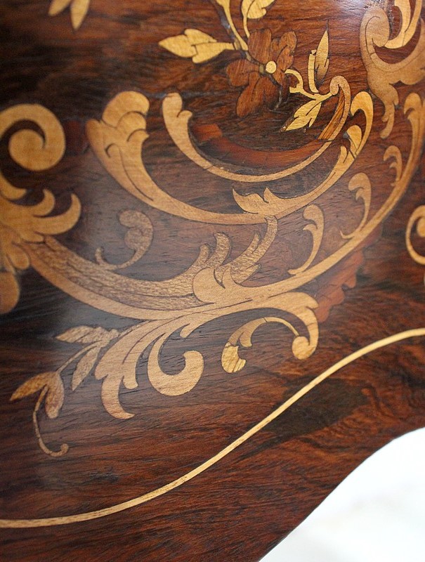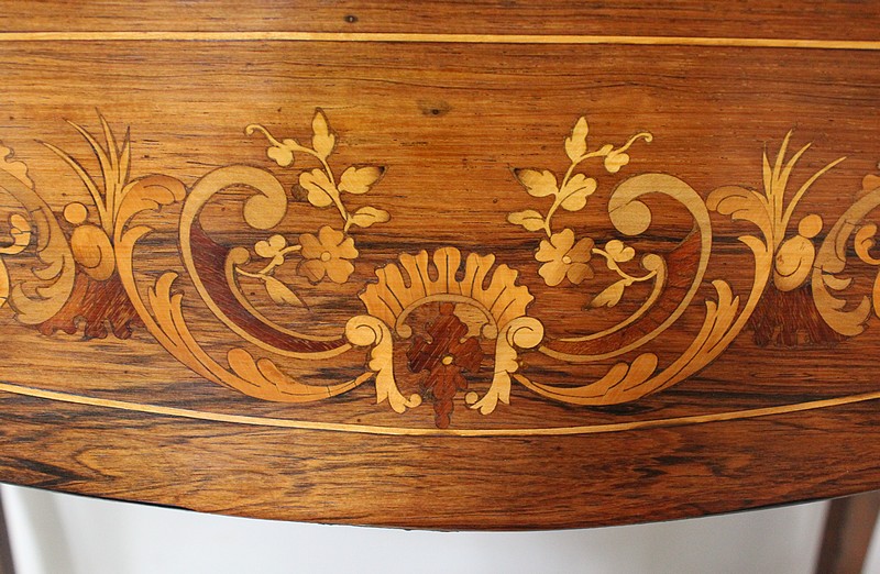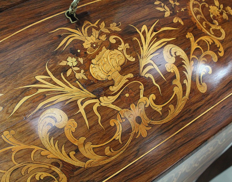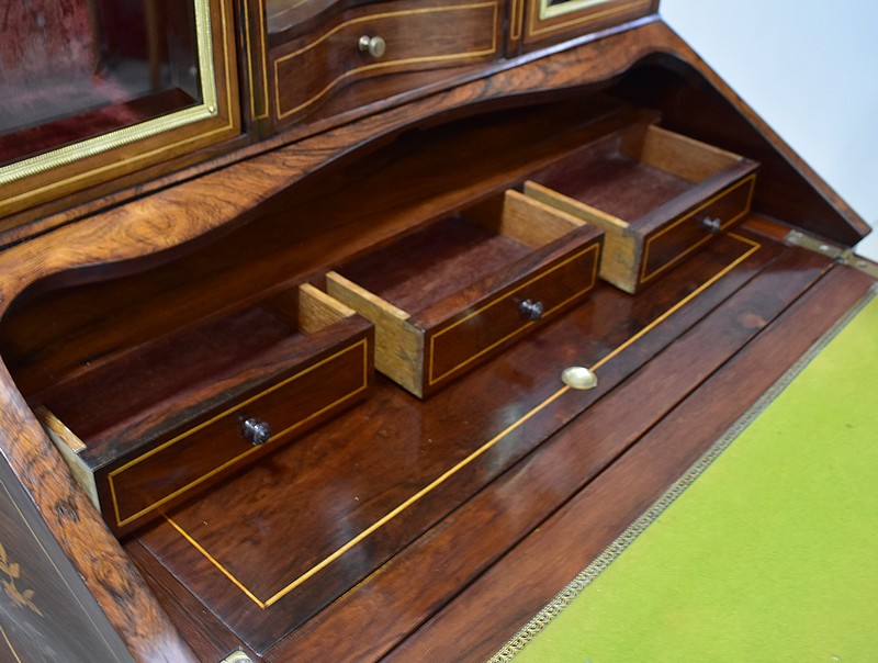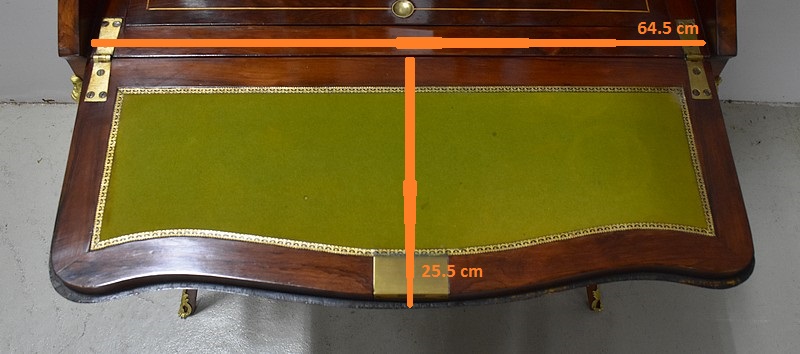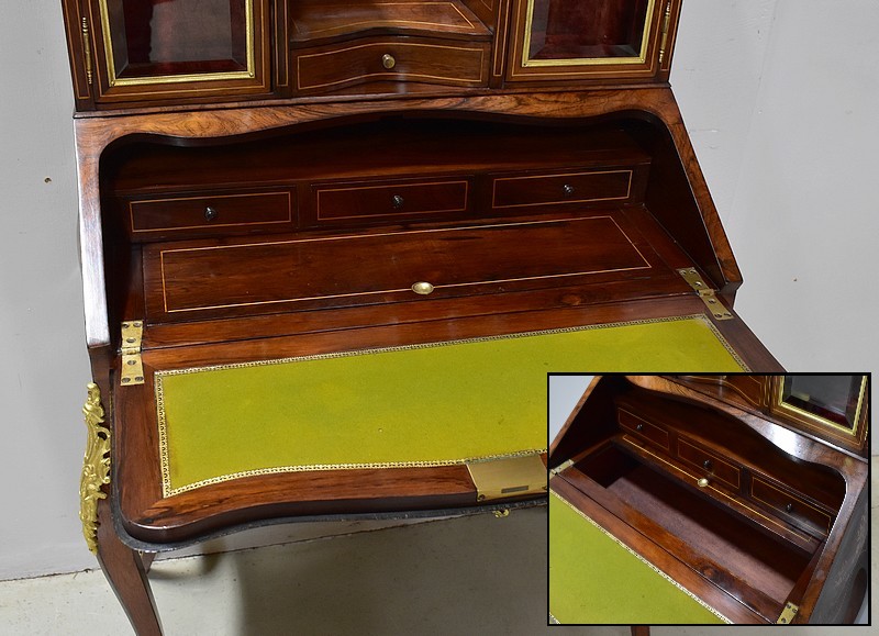 Bonheur du Jour d’époque Napoléon III, avec Marqueteries de Bois divers sur fond de Placage de Palissandre de Rio.