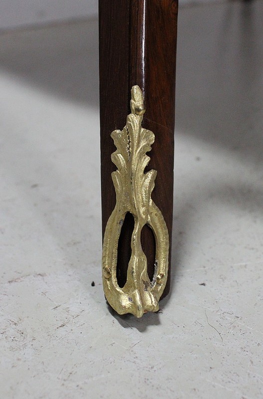L’ensemble repose sur quatre hauts pieds au Galbe prononcé, ornés de Chutes en Bronze à l’avant et terminés par quatre Sabots découpés.