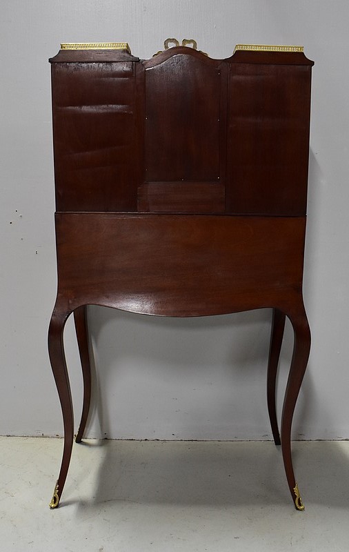 Ce Petit Meuble de Dame, bien que d’un seul tenant, se compose par définition de deux éléments : une Table Bureau, sommée de Gradins.