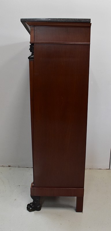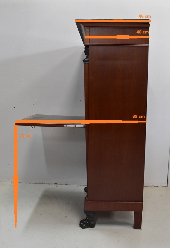 On appréciera les dimensions raisonnables de ce Secrétaire, ainsi que sa grande Sobriété, dû notamment à son Acajou de Fil, bois, par définition, très modestement veiné.