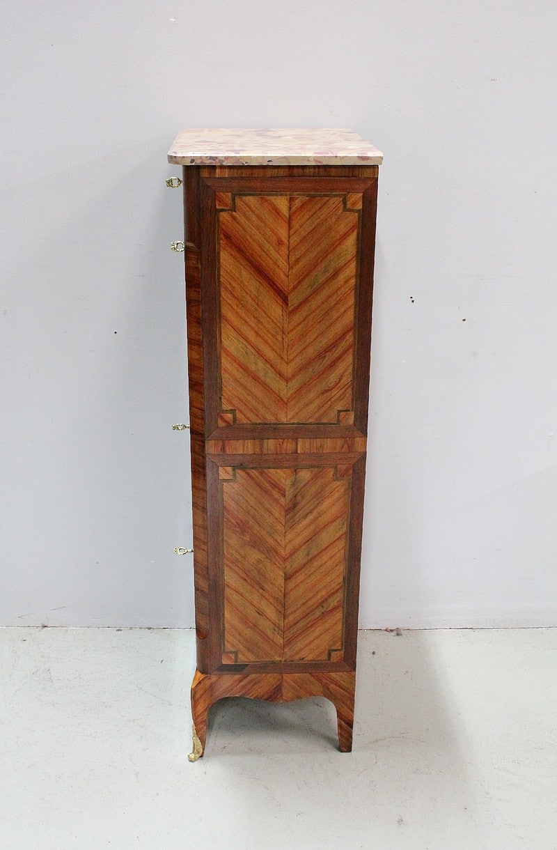 Son dessus en marbre Brèche d’Alep est découpé en arrondi aux angles avants et mouluré en gorge.