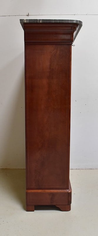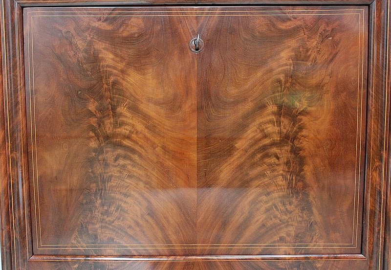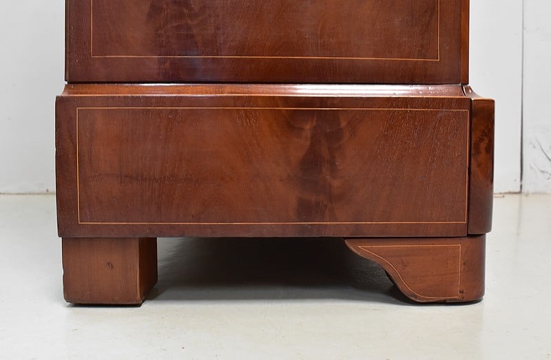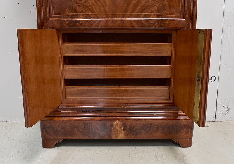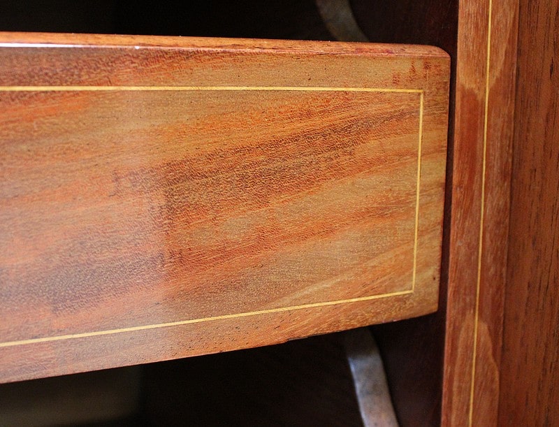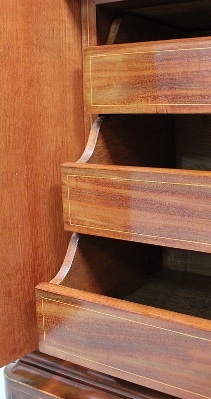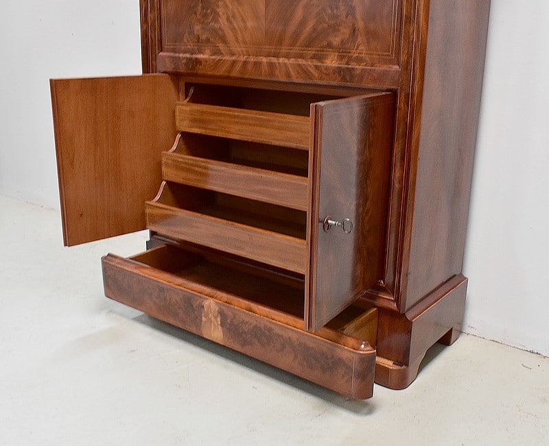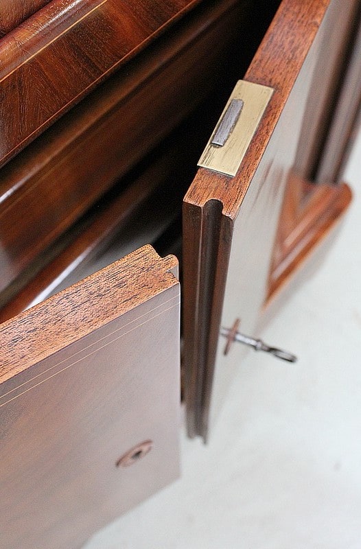 En partie basse, ce Secrétaire est doté de deux portes, à fermeture à Noix évitant ainsi toutes déformations. Elles abritent trois autres tiroirs, mais à l’Anglaise.