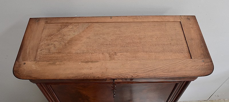 A l’exception de ce dernier, les trois autres ouvrants de façade sont dotés d’une serrure, à trois points pour l’abattant, haute et basse pour la porte de droite. Elles sont en état de fonctionnement et équipées de leur clé respective.