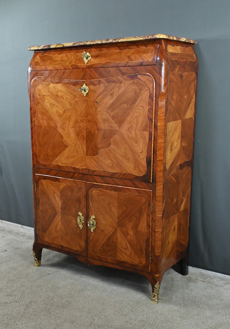 Ce secrétaire en bois de rose et palissandre, datant de la fin du XVIIIe siècle, incarne à merveille l’élégance et le raffinement des meubles d’époque.