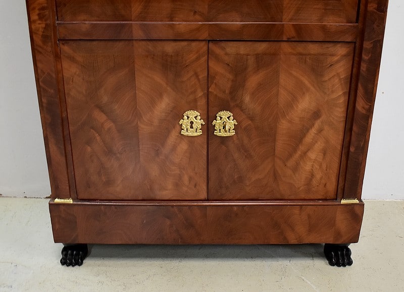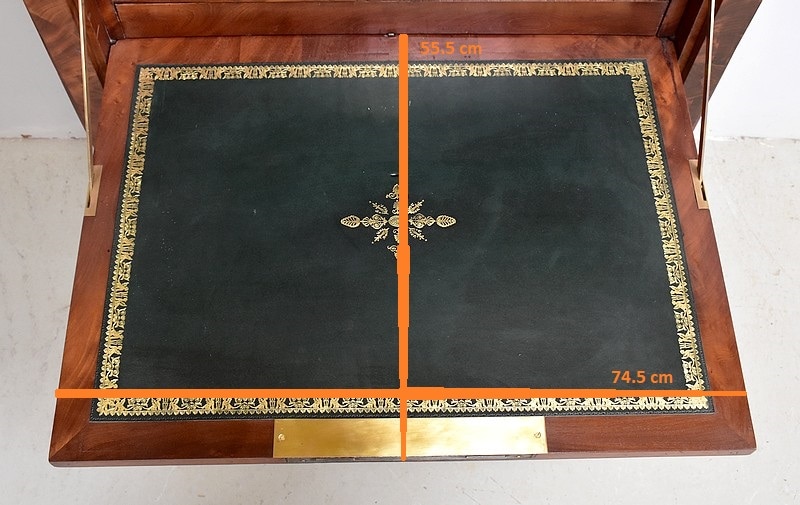 Secrétaire ‘Retour d’Égypte’, en Placage de Ronce d’Acajou, avec dessus Marbre à dominante Gris foncé discrètement nuancé de Noir et de Blanc.