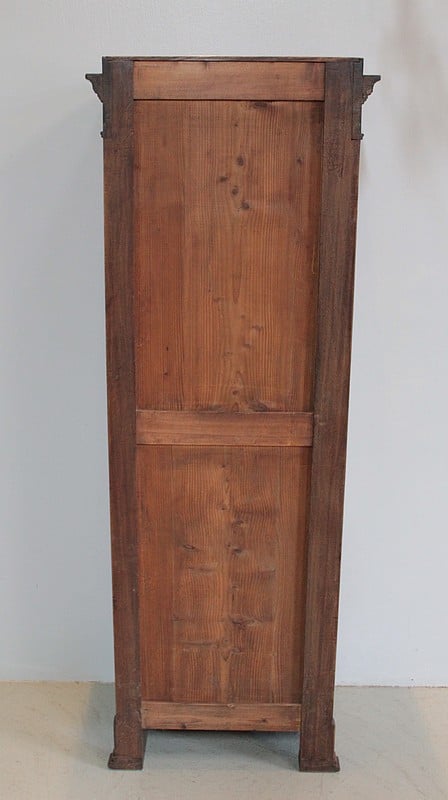 L’arrière est en sapin et les montants en chêne. Il repose sur des pieds sabots.