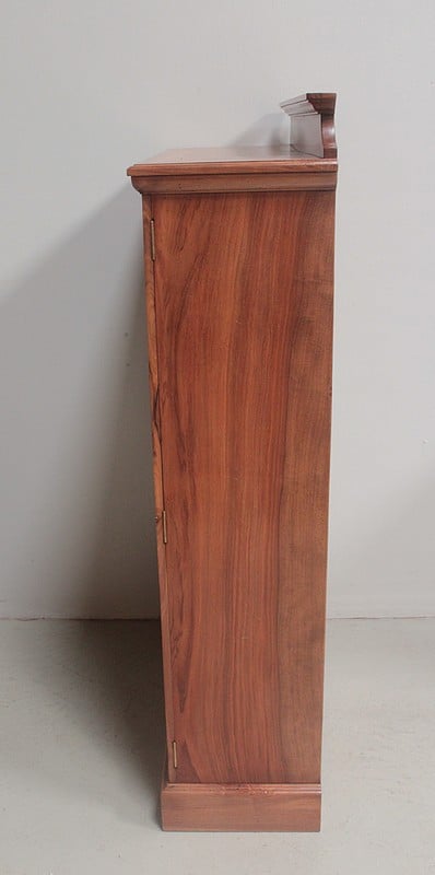 Cartonnier en noyer blond massif, ouvrant par un tiroir en ceinture, cinq casiers à gauche, trois casiers à droite et une porte en partie basse renfermant un classeur vertical.
