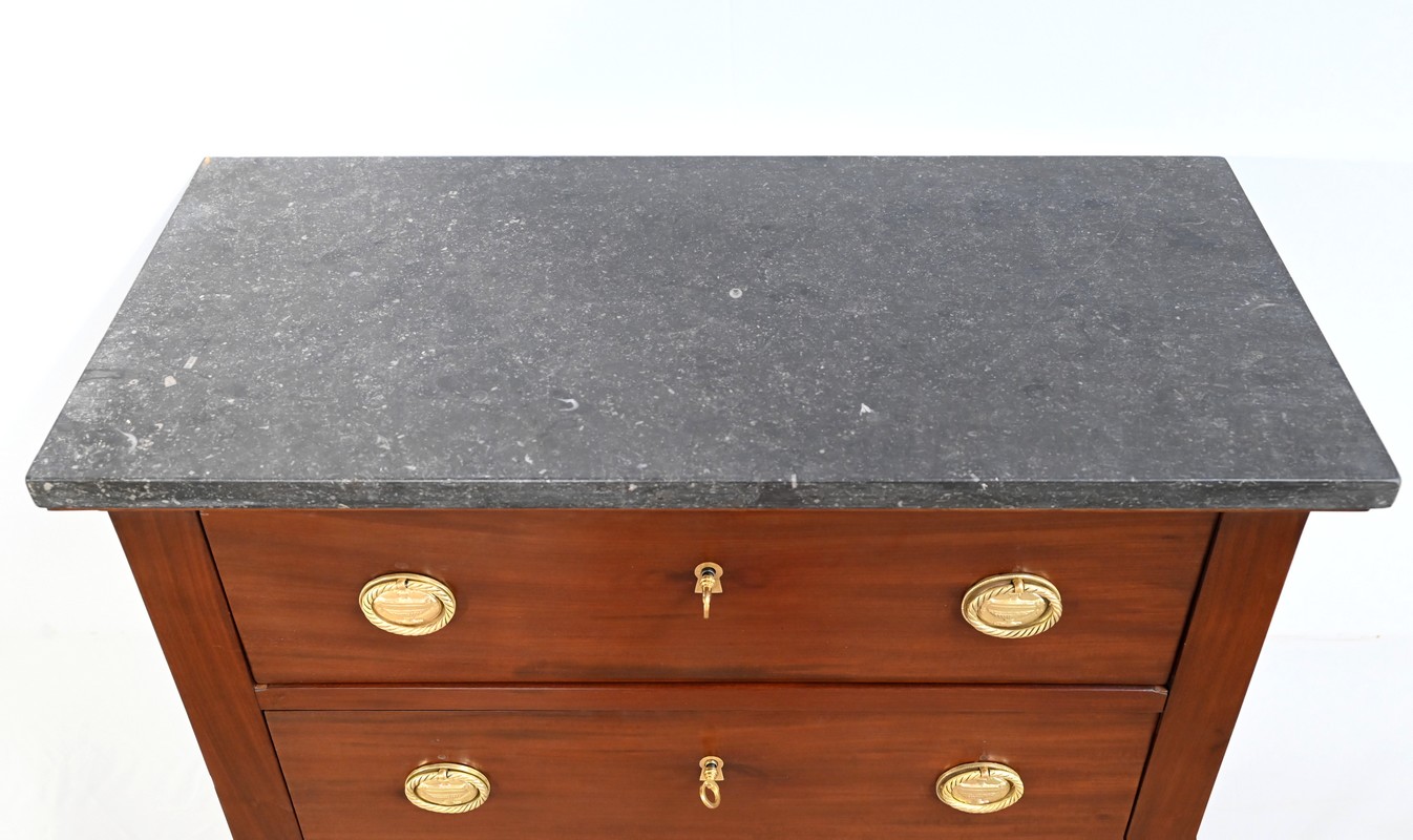 Ce chiffonnier en acajou plaira pour sa faible profondeur et ses lignes droites propres au courant directoire.