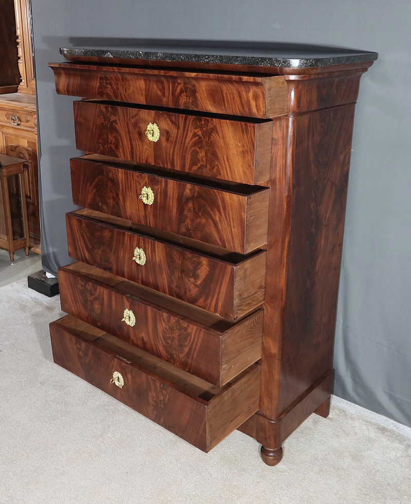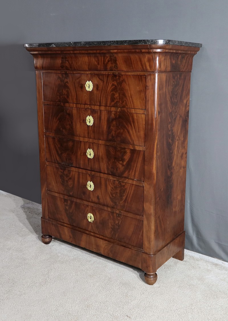 Chiffonnier en Ronce d’Acajou, époque Restauration – Début XIXe