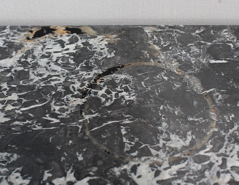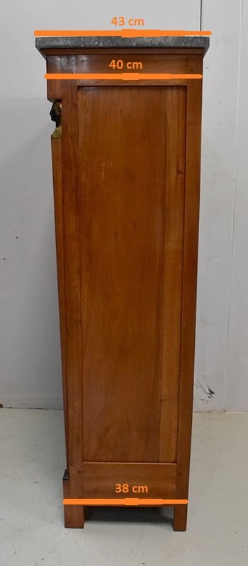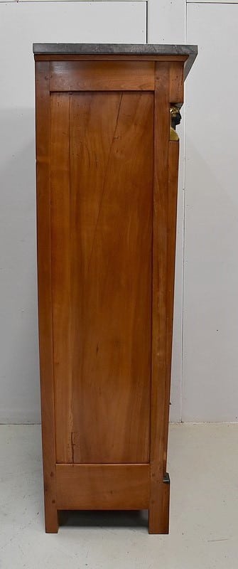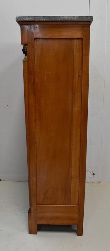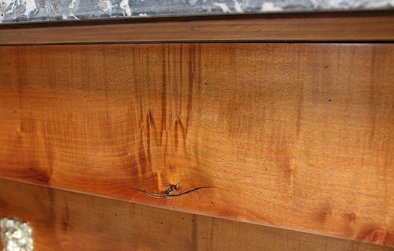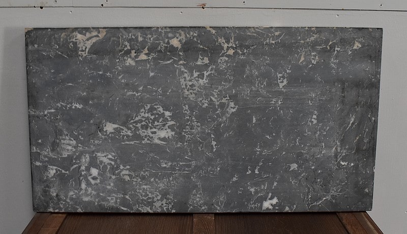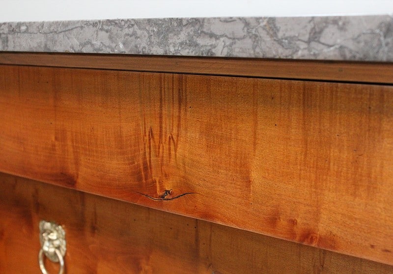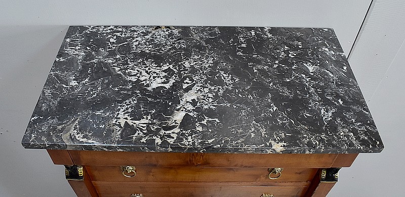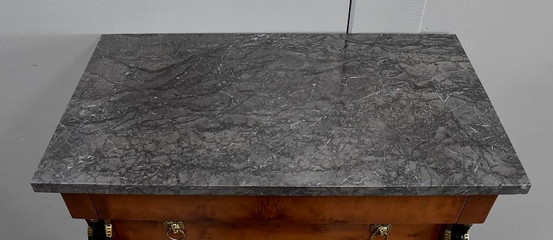 Le dessus de ce Semainier est un Marbre à dominante Gris avec un fin veinage Blanc.