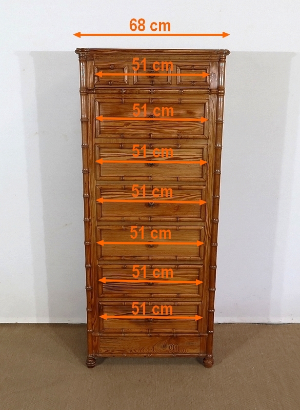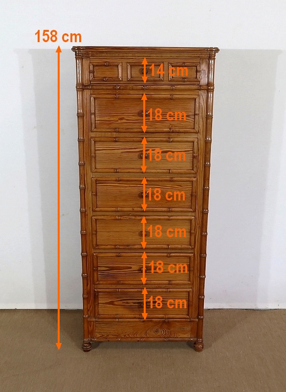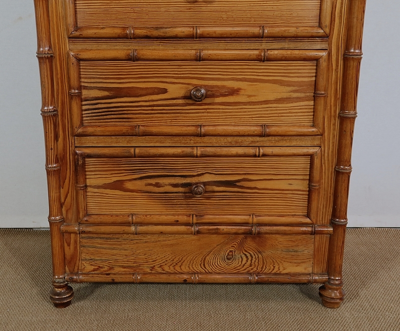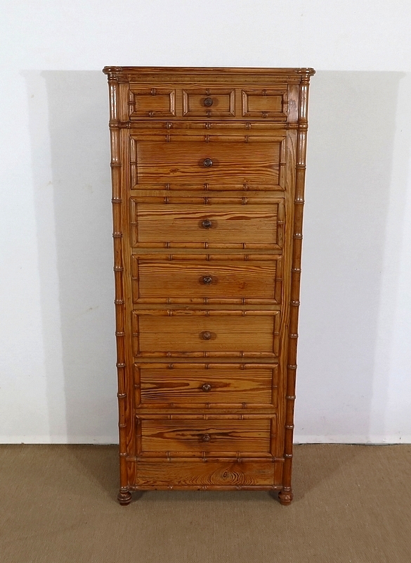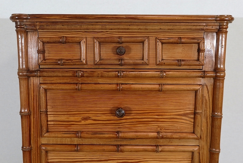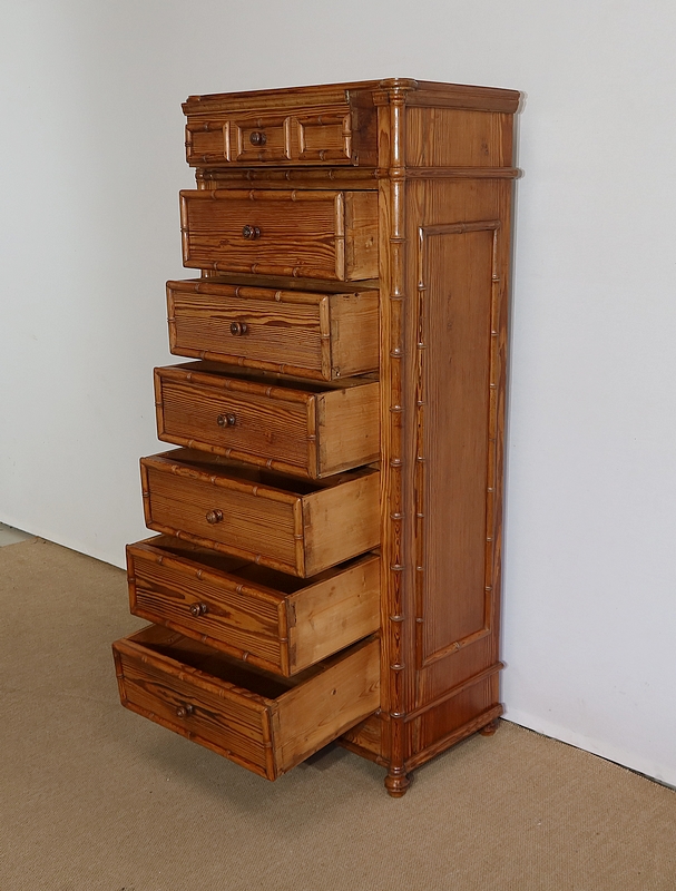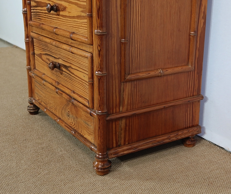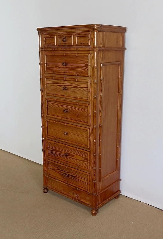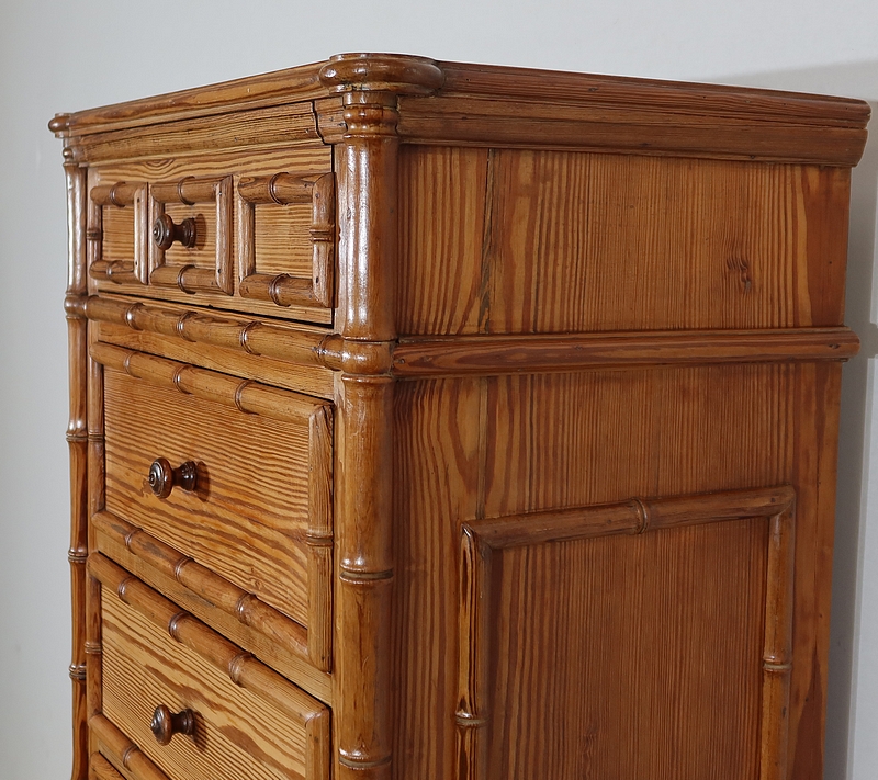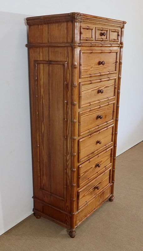 Rare semainier Art Nouveau en pitchpin massif tourné façon bambou.