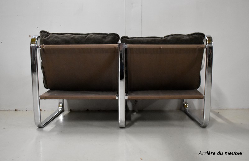 Confortable Banquette Vintage, deux places, avec Ossature en Métal Chromé.