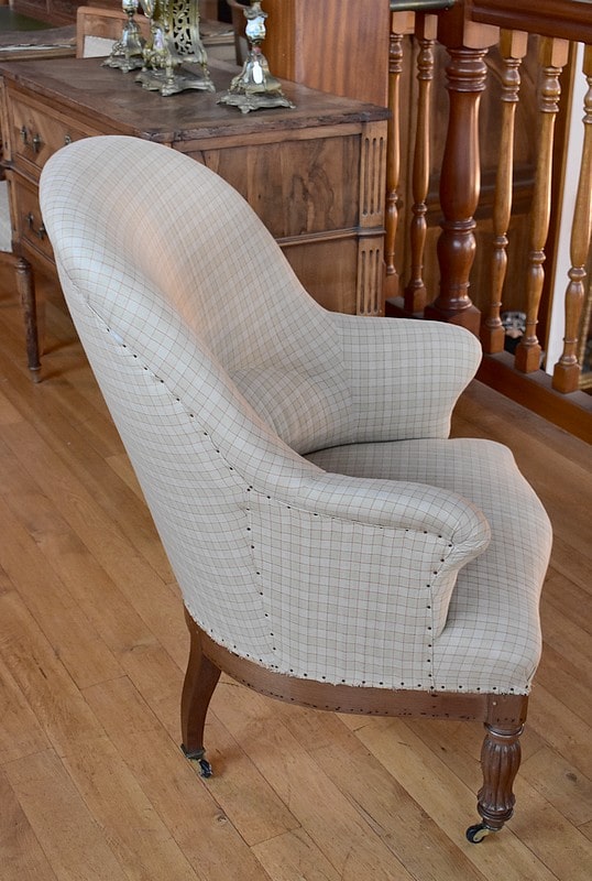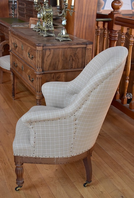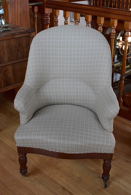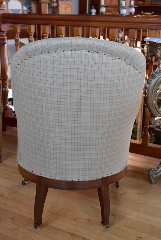 La tapisserie a été entièrement refaite, à l’ancienne, avec crins et ressorts sur sangles, après équerrage du fût (voir photo)