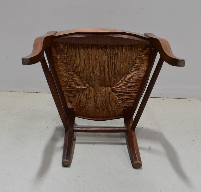 Petite Chaise en Merisier, époque Louis Philippe, avec assise à hauteur d’Enfant et au Paillage artisanal en parfait état.