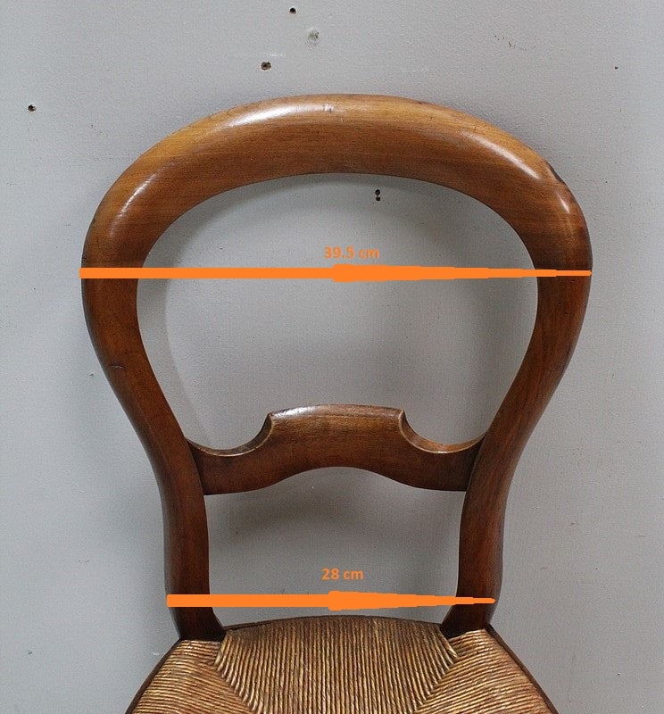 Son dossier Ballon, par définition arrondi et plus large en partie haute, est barreauté en son milieu par une traverse légèrement découpée.