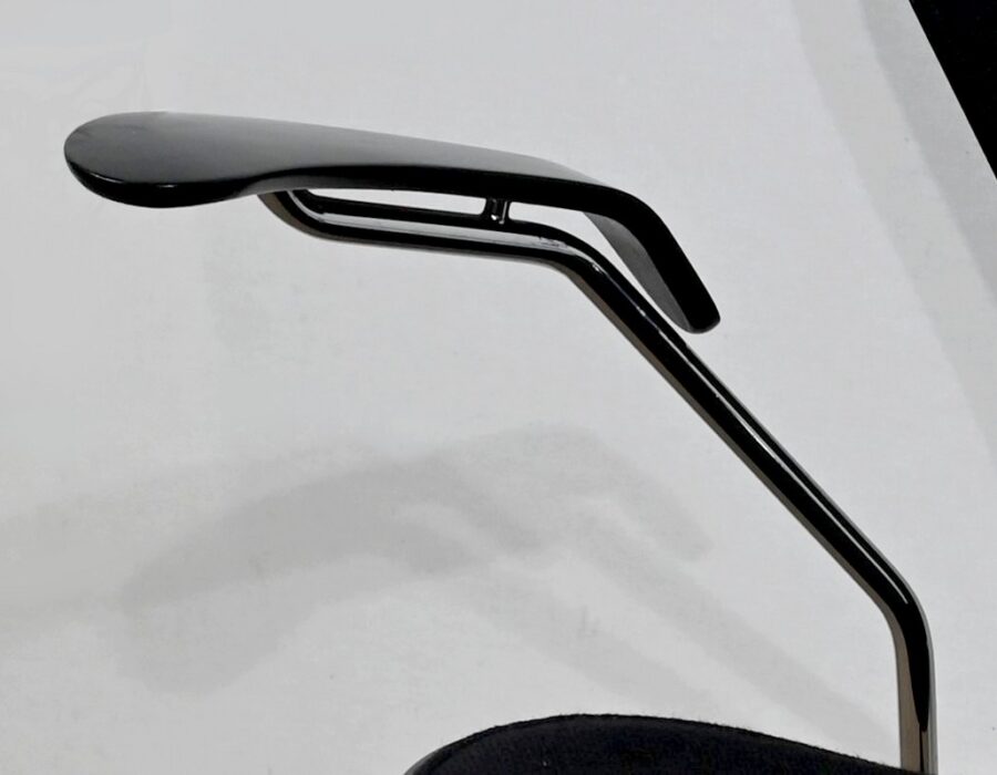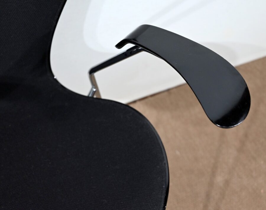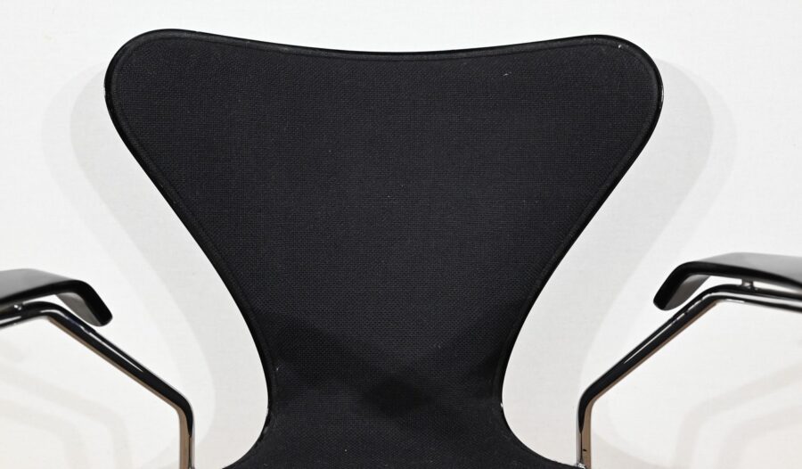 « La Série 7 » se compose d’une assise et d’un dossier, en contreplaqué moulé en une seule pièce, habillés d’un tissu noir.