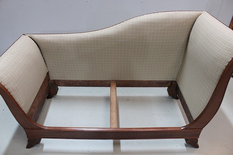 L’assise ainsi que les côtés ont été entièrement refaits à l’ancienne et recouverts d’un tissu d’apprêt permettant à l’acquéreur, le choix du tissu final.