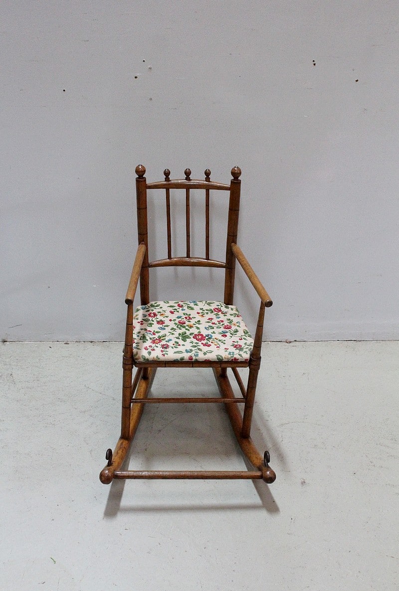 Fauteuil à bascule d’enfant en Hêtre teinté dans l’esprit Bambou.