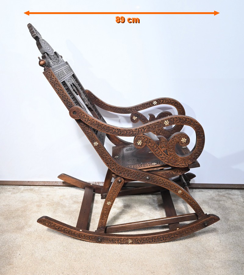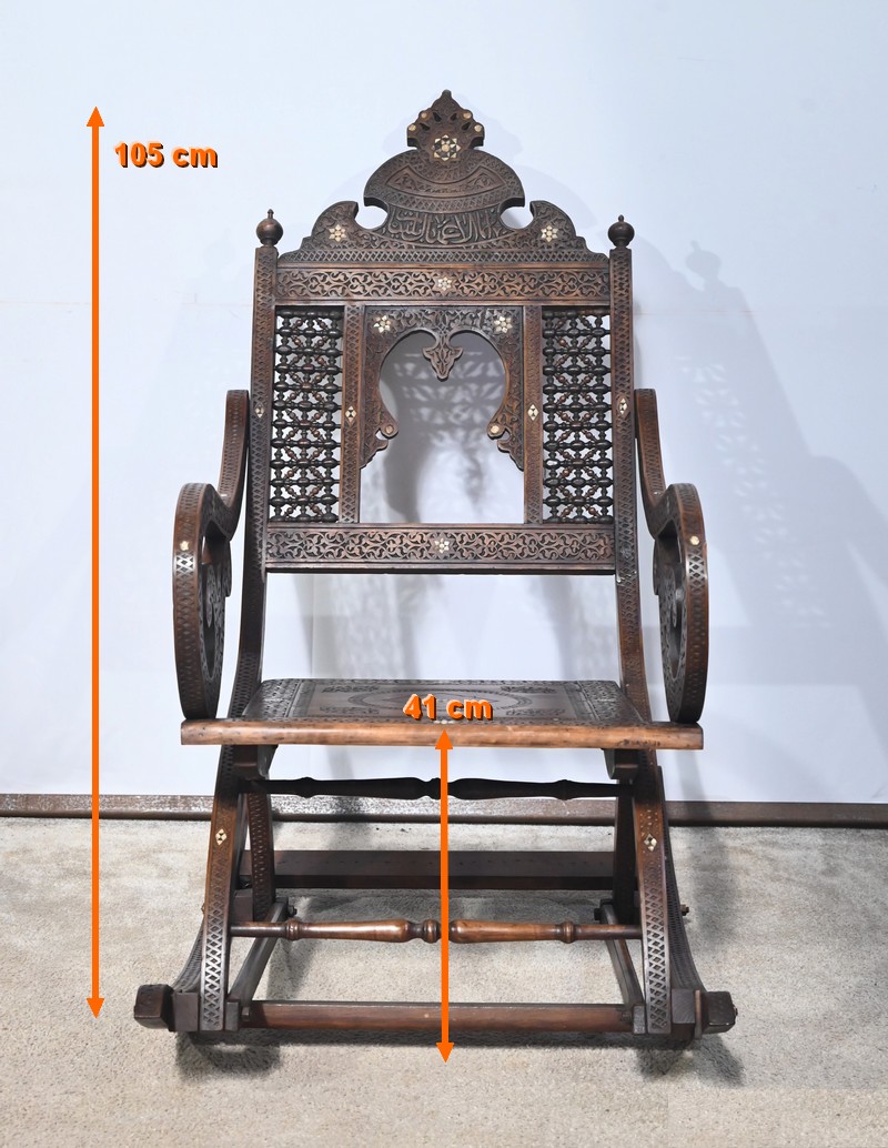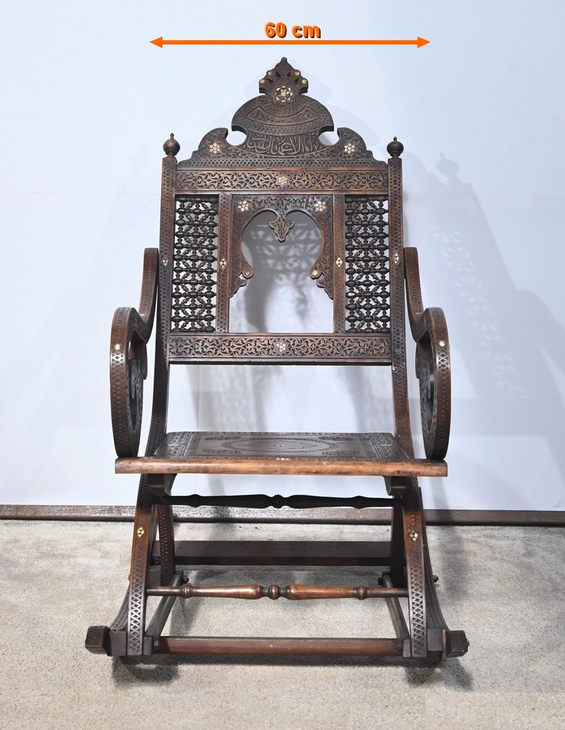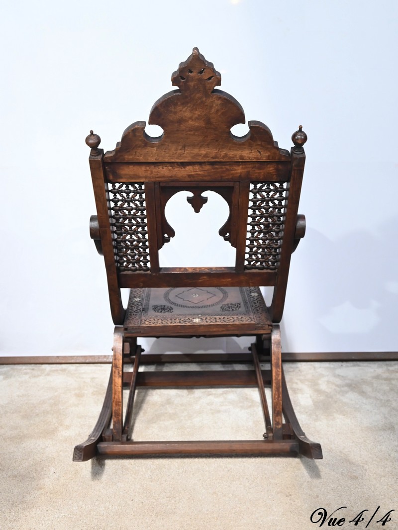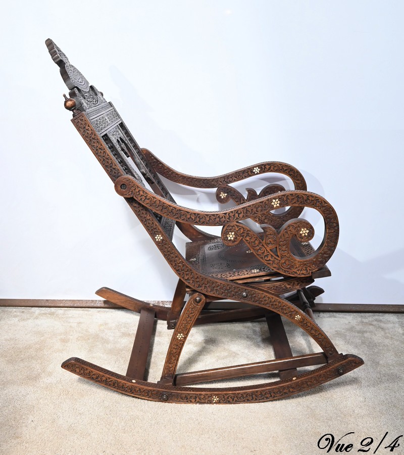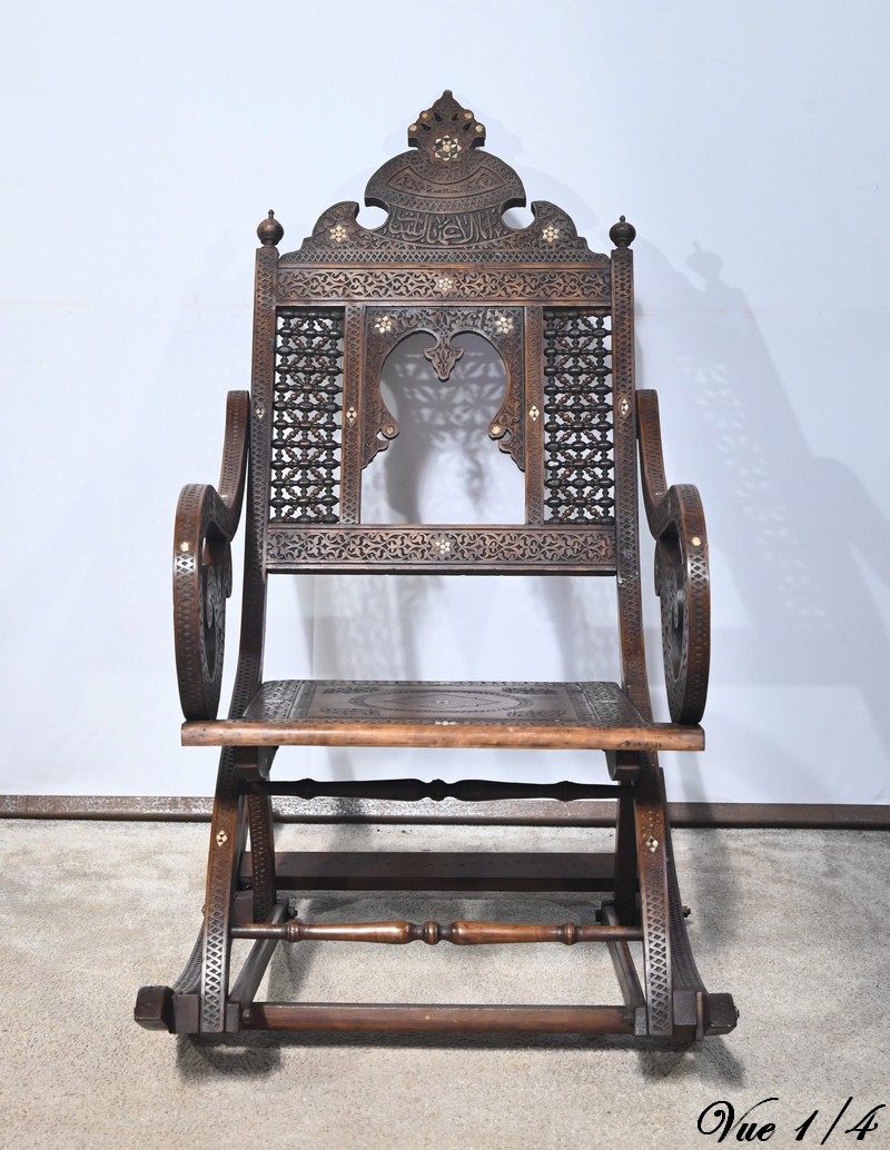 Fauteuil à bascule de type Rocking Chair en marqueterie syrienne de noyer.