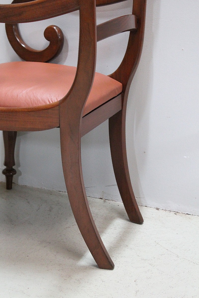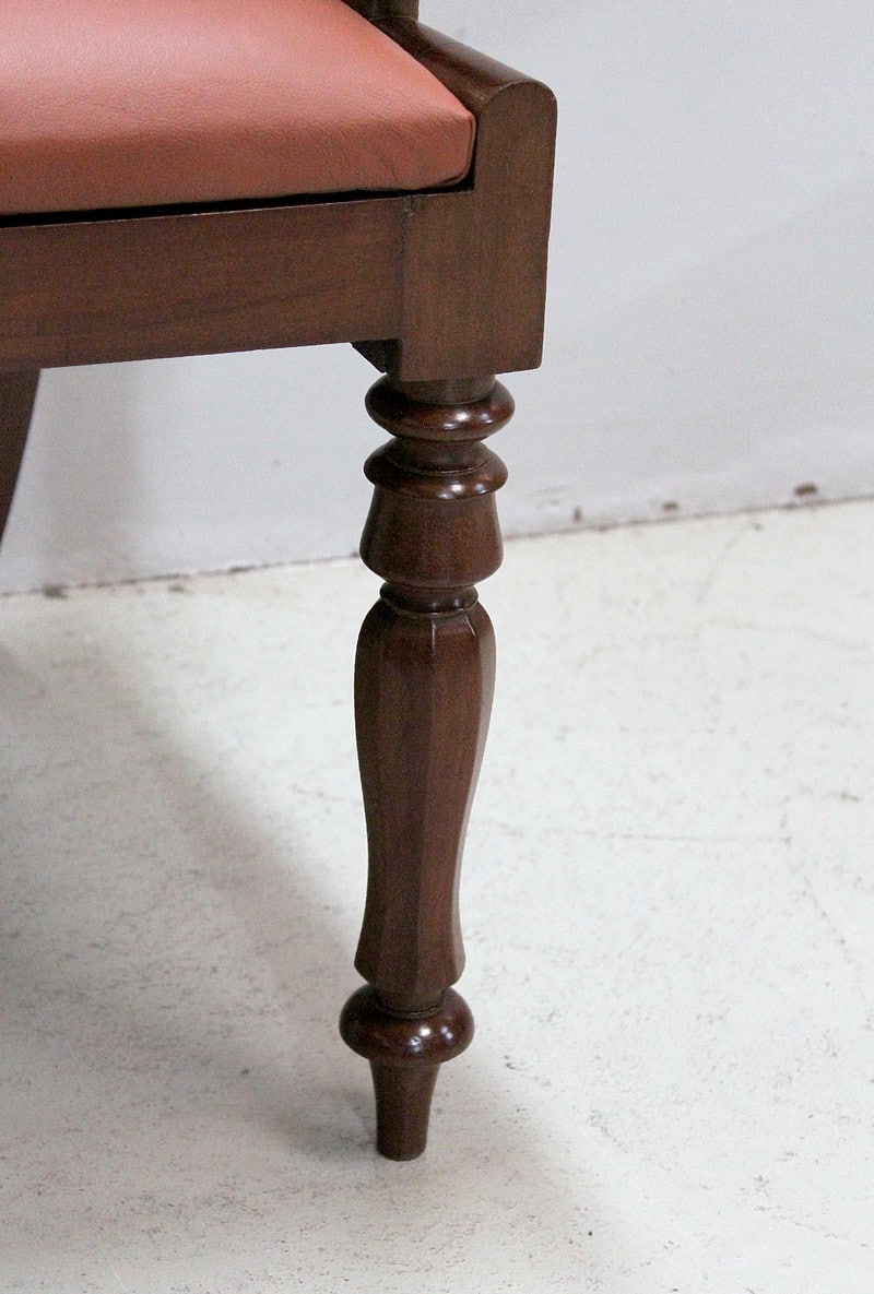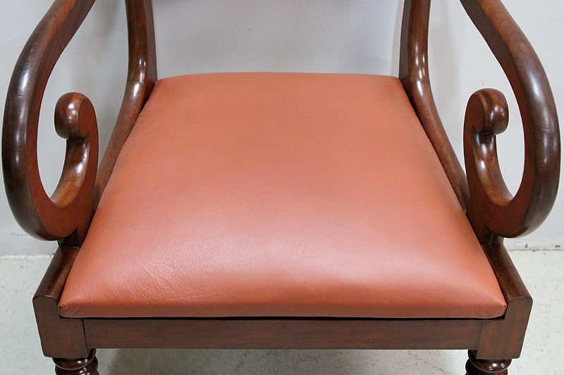 Son assise, dont le fût a été équerré, a été refaite à l’ancienne et recouverte d’un nouveau cuir couleur Terre de Sienne.
