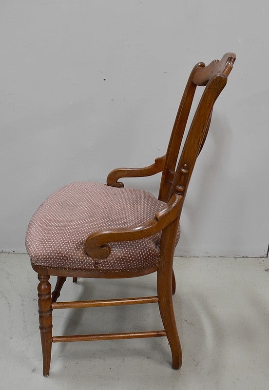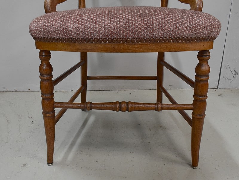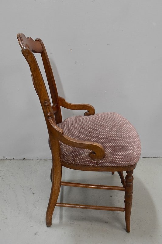 Fauteuil de Bureau en chêne sculpté et tourné. Dossier à palmette centrale, accotoirs à crosses en retrait et assise tapissier recouverte d’un tissu velours ancien.