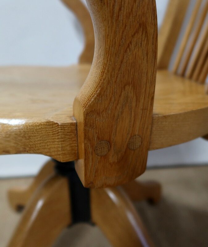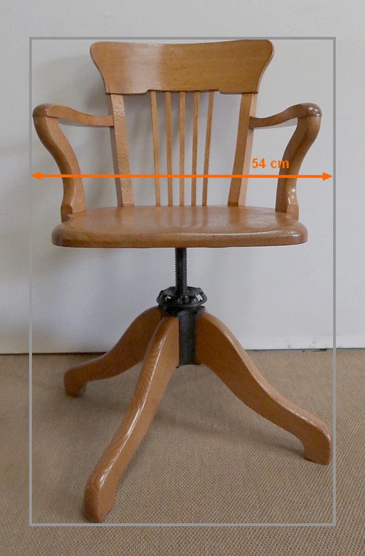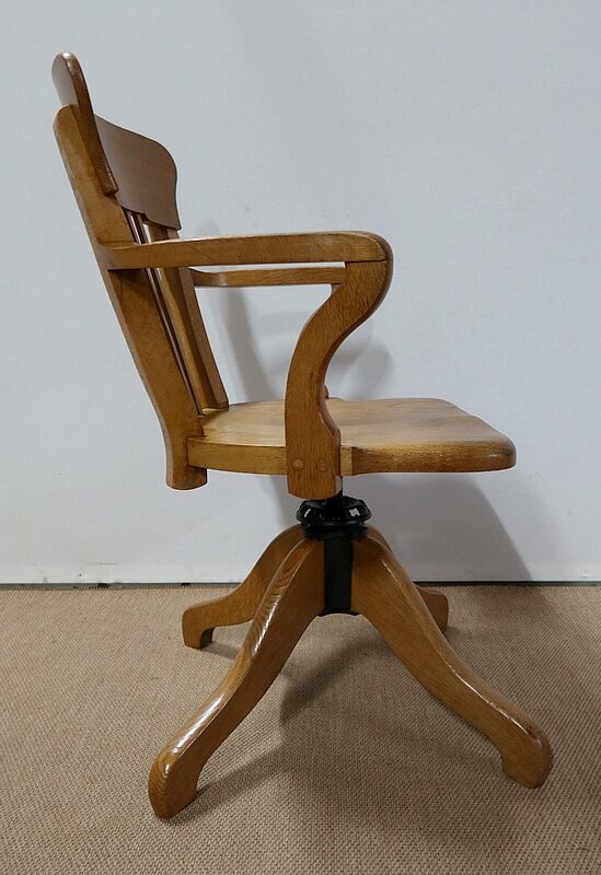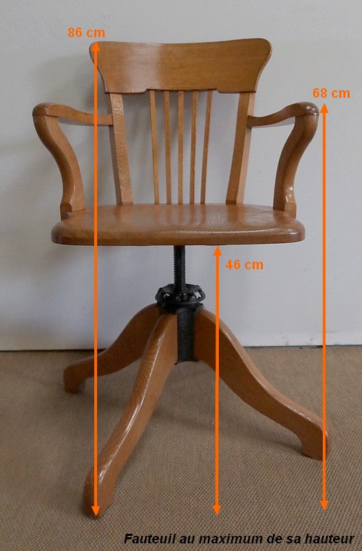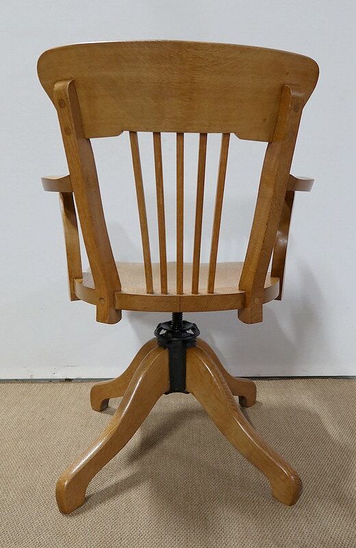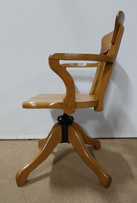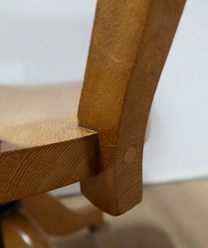 Fauteuil de Bureau en chêne clair, tournant et adaptable en hauteur à plus ou moins 8 cm.