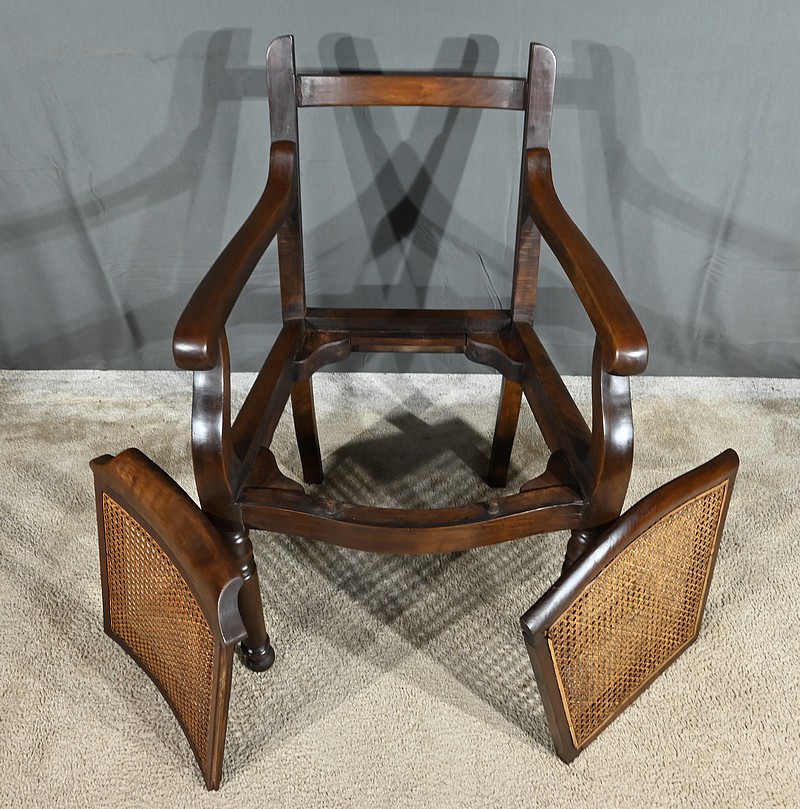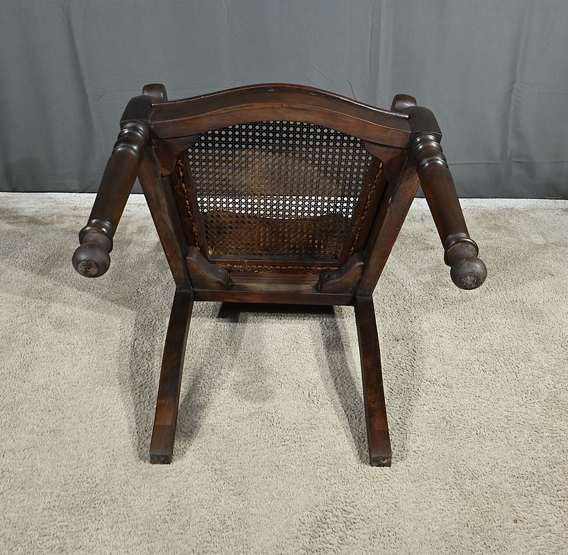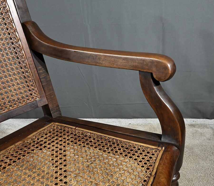Ce siège possède une assise et un dossier cannés en excellent état. L’assise mouvementée en façade, est large, confortable et solide. Elle est également amovible.