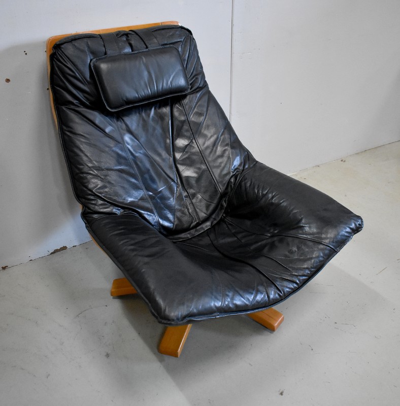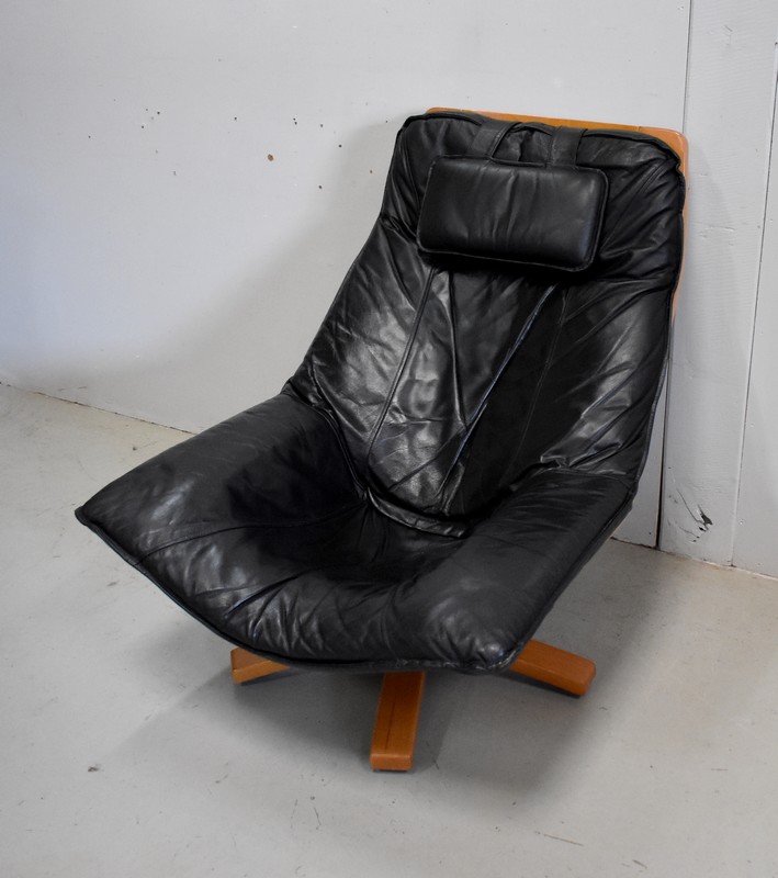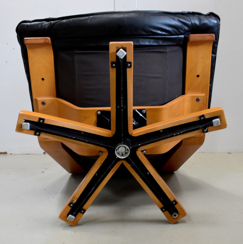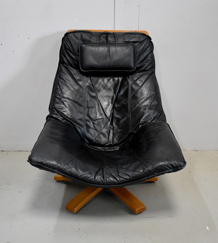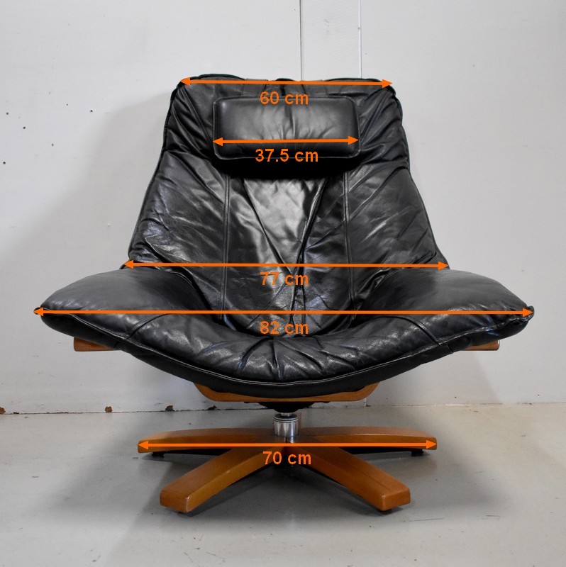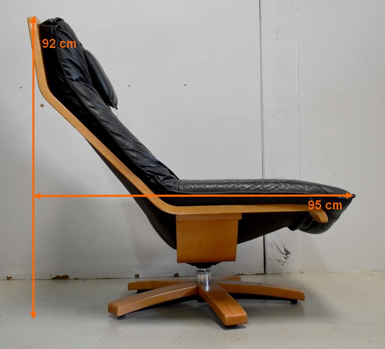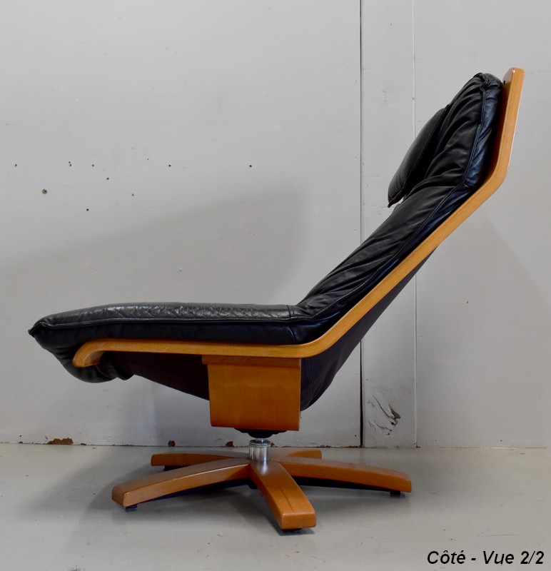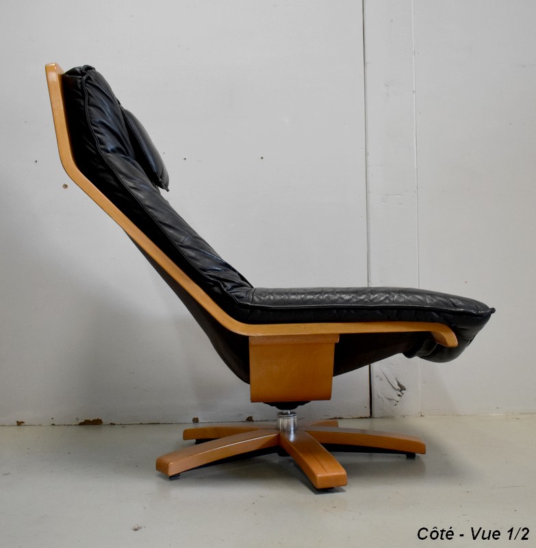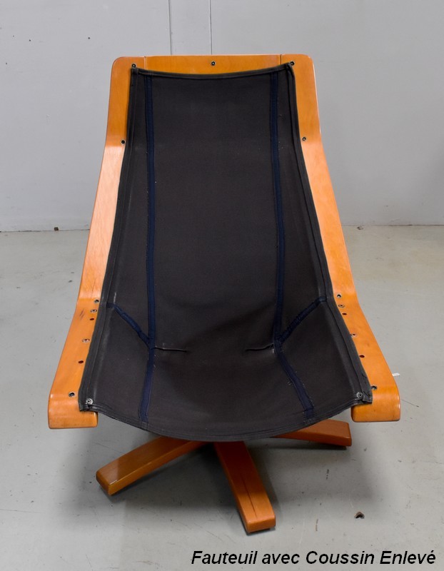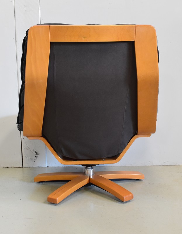 Très Beau Fauteuil de Relaxation Pivotant, avec structure en Hêtre, datant des années 1970 / 1980.