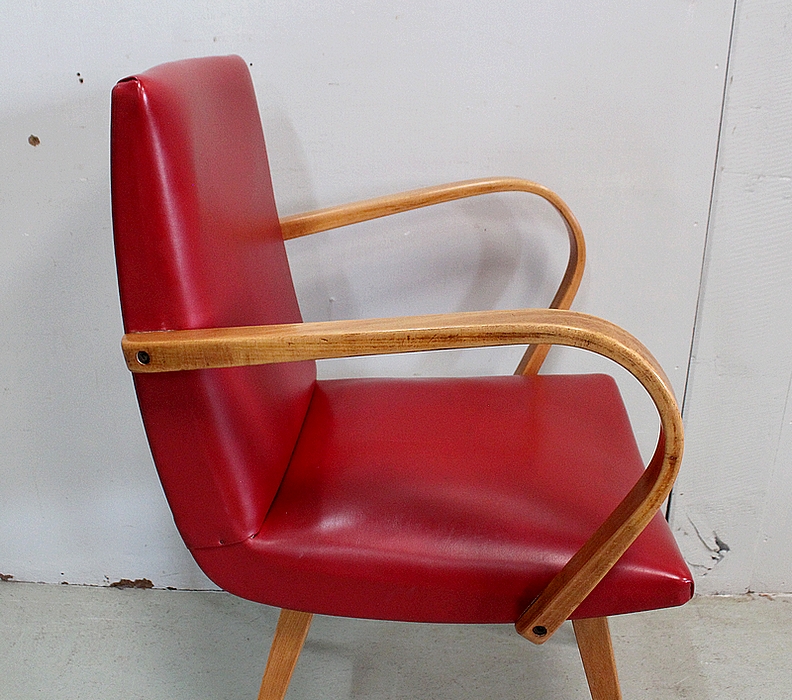 Fauteuil conçu dans le goût Baumann, dans les années 1950 / 1960, avec structure en Hêtre Naturel Clair.