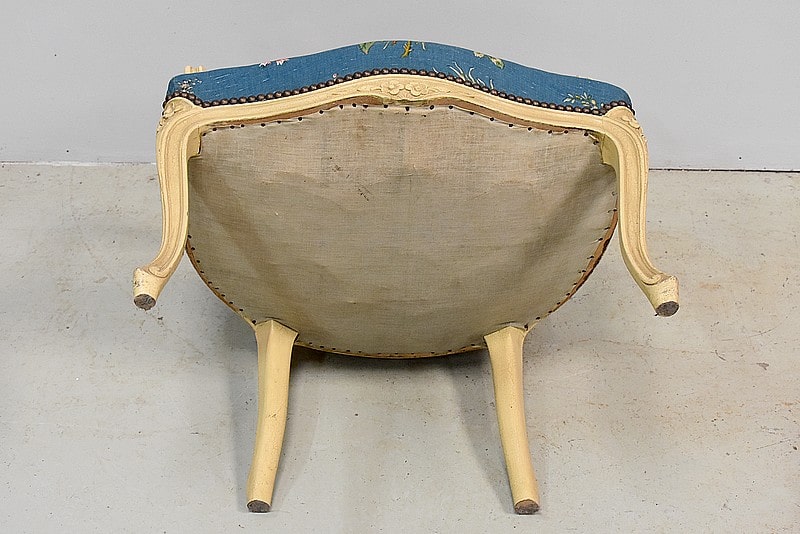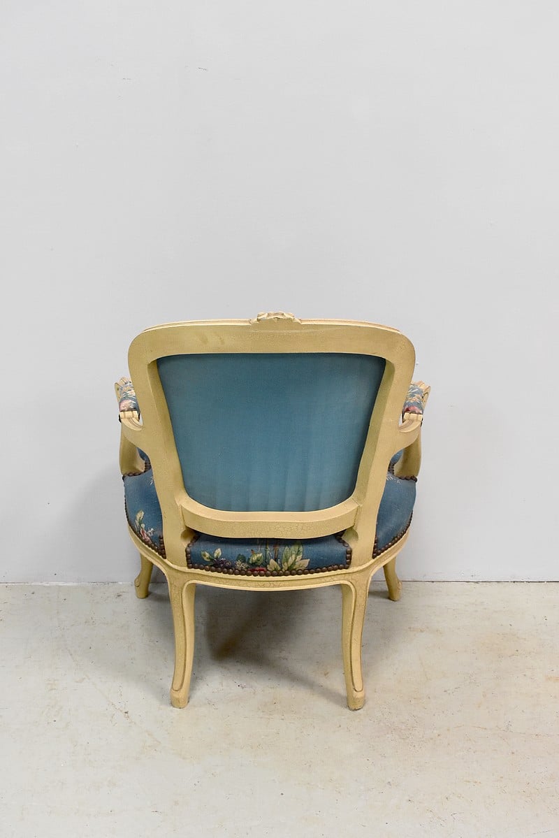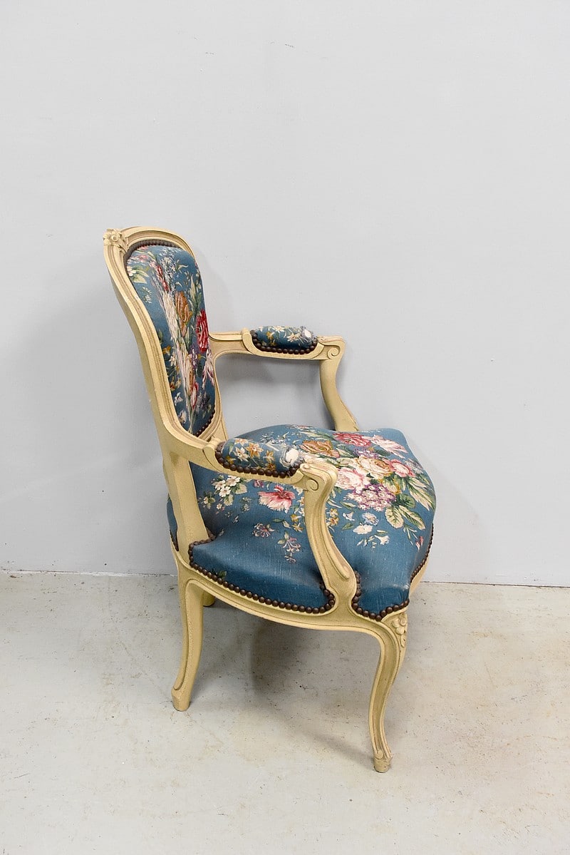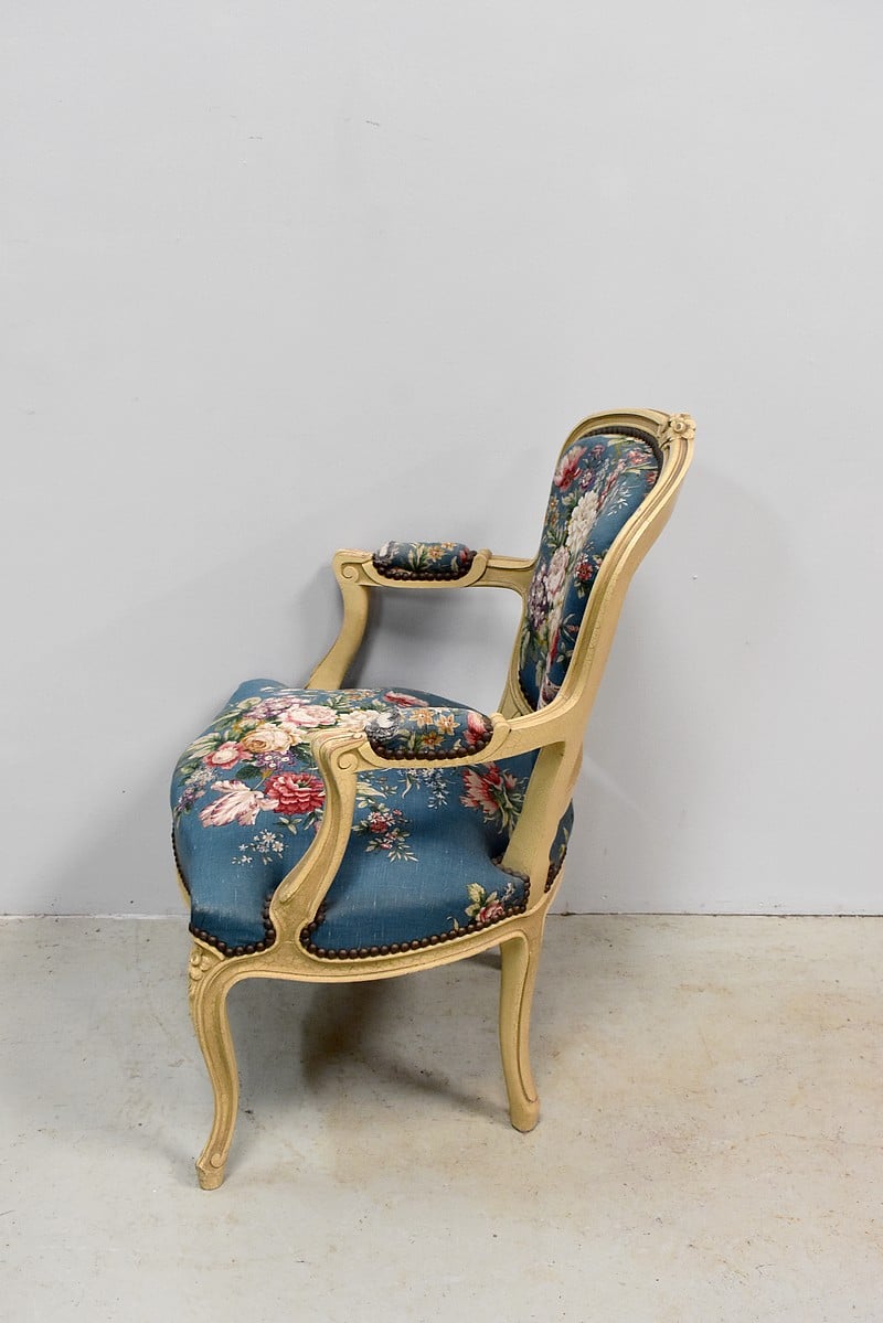 Fauteuil de style Louis XV en bois peint couleur crème.