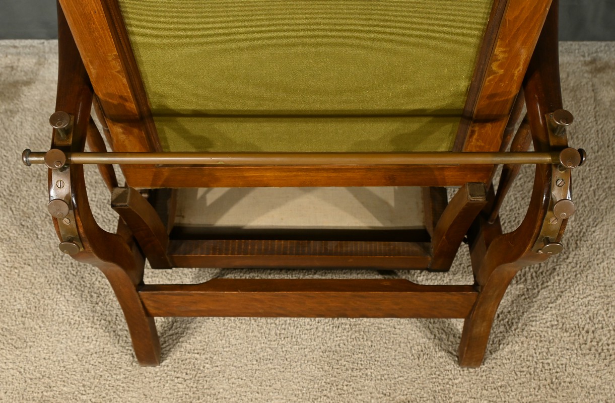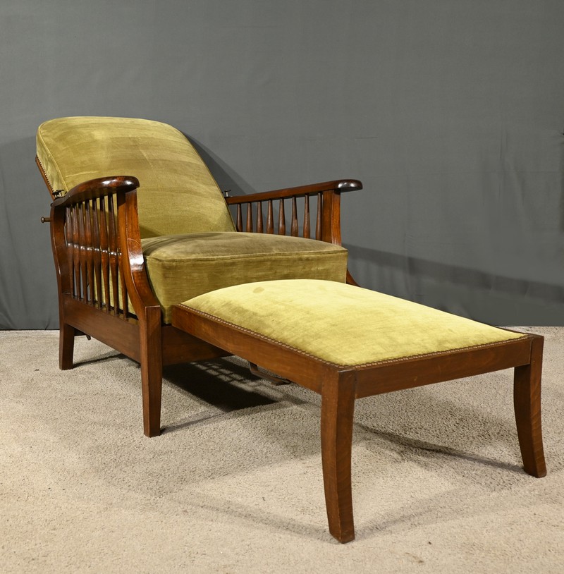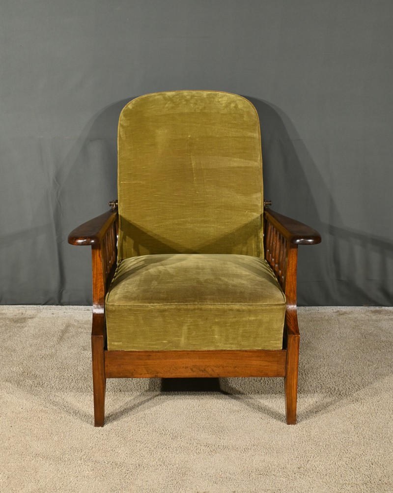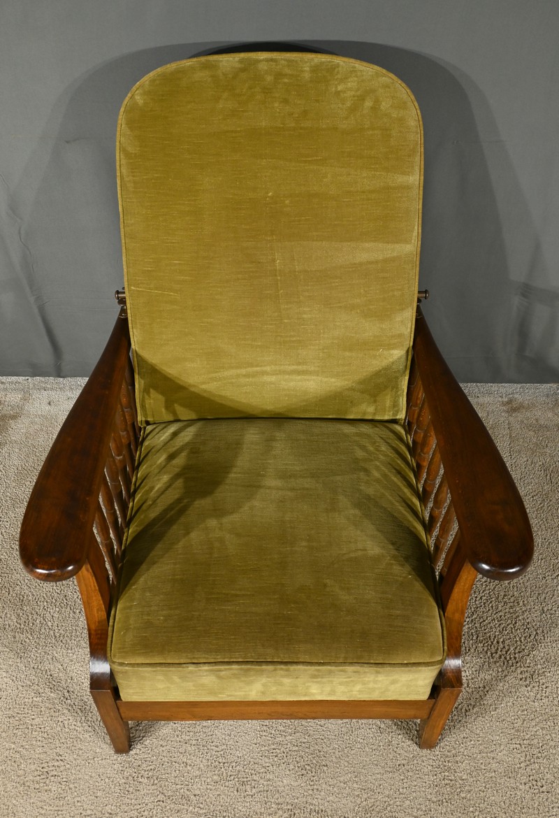 Le fauteuil Morris en hêtre teinté des années 1920 est une pièce emblématique de l’époque art & craft, originaire d’Angleterre.