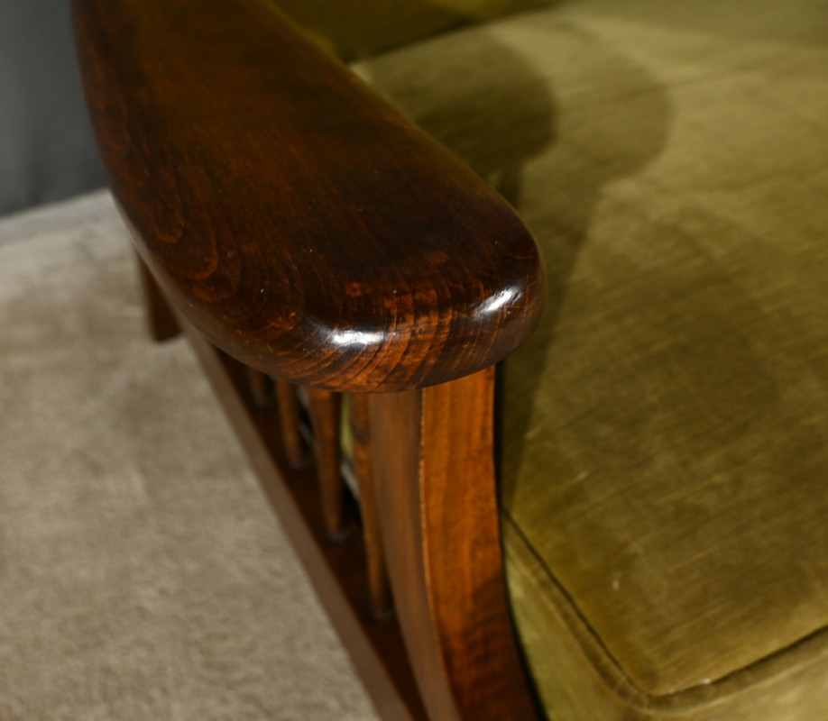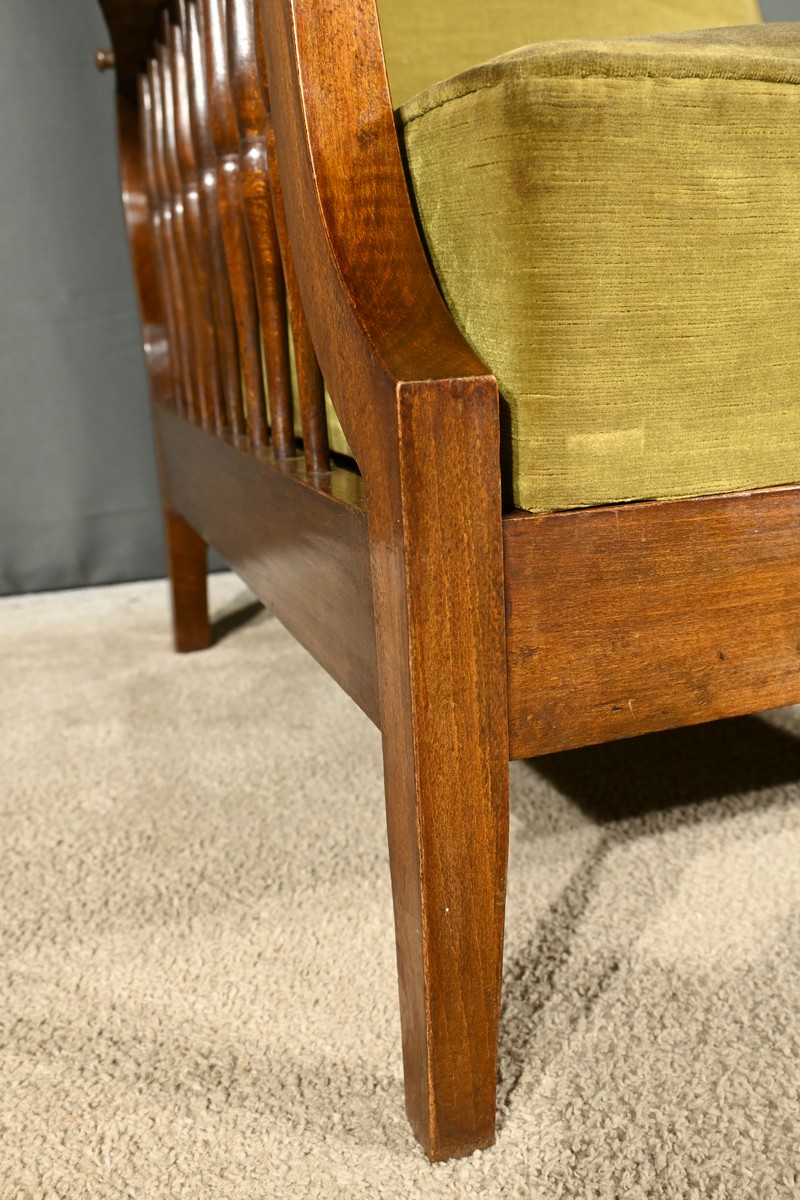 Ce fauteuil, au design raffiné et fonctionnel, incarne parfaitement l’esprit du mouvement initié par William Morris (1834-1896), écrivain, poète et architecte, dont les œuvres ont profondément influencé l’art nouveau et l’art déco.